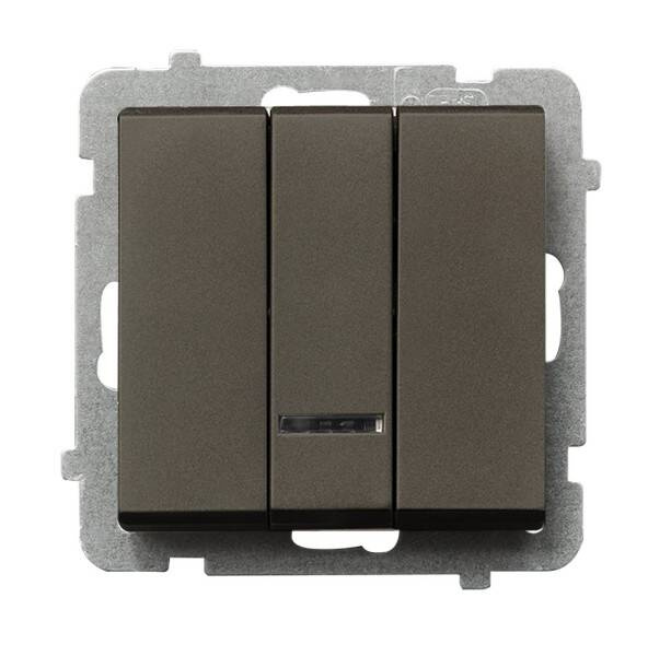 Łącznik potrójny z podświetleniem niebieskim Ospel Sonata Czekoladowy Metalik