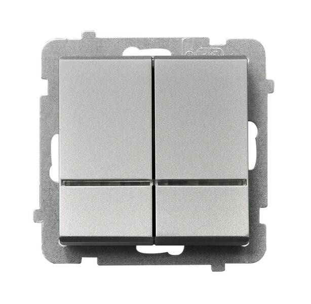 Łącznik dwugrupowy świecznikowy z podświetleniem niebieskim Ospel Sonata Srebrny Mat
