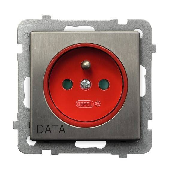 Gniazdo pojedyncze z uziemieniem DATA z przesłonami torów prądowych Sonata Stal Inox Ospel