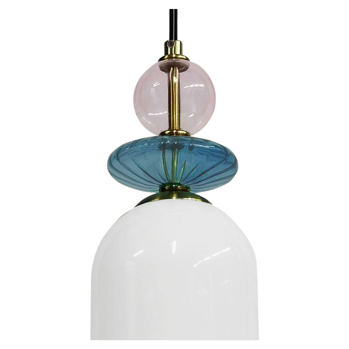 Lampa wisząca Tropea to połączenie szkła i metalu w eleganckim wydaniu postarzanego złota. Jej szklane elementy występują w trzech harmonizujących ze sobą kolorach: białym, turkusowym i brudnym różu. Dzięki tej różnorodnej kolorystyce lampa staje się nie tylko funkcjonalnym źródłem światła, ale także wyjątkową ozdobą każdego wnętrza. Idealnie komponuje się z różnorodnymi stylami aranżacyjnymi, takimi jak boho, retro czy vintage. Dzięki imponującej długości, Tropea może pełnić rolę centralnego punktu w jadalni, dodając jej niepowtarzalnego uroku. Świetnie sprawdzi się również jako designerski element wystroju sypialni.