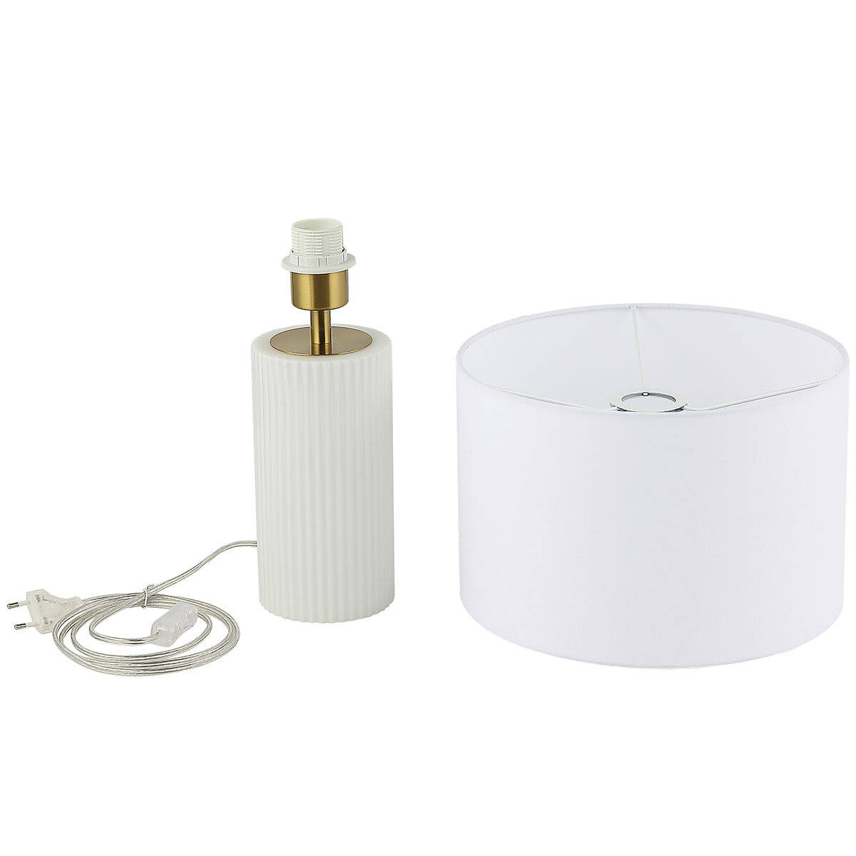 Lampa stołowa Tokio w białym kolorze to niezwykły element, który podkreśli elegancję i styl twojego wnętrza. Lampa posiada szklaną podstawę w białym odcieniu oraz biały klosz wykonany z tkaniny, który pięknie rozprasza światło. Wyjątkowy element łączący podstawę z kloszem, wykonany z metalu w złotym kolorze, nadaje lampie wyrafinowanego charakteru. Abażur z delikatnej tkaniny doskonale współgra z resztą lampy, tworząc harmonijną całość.