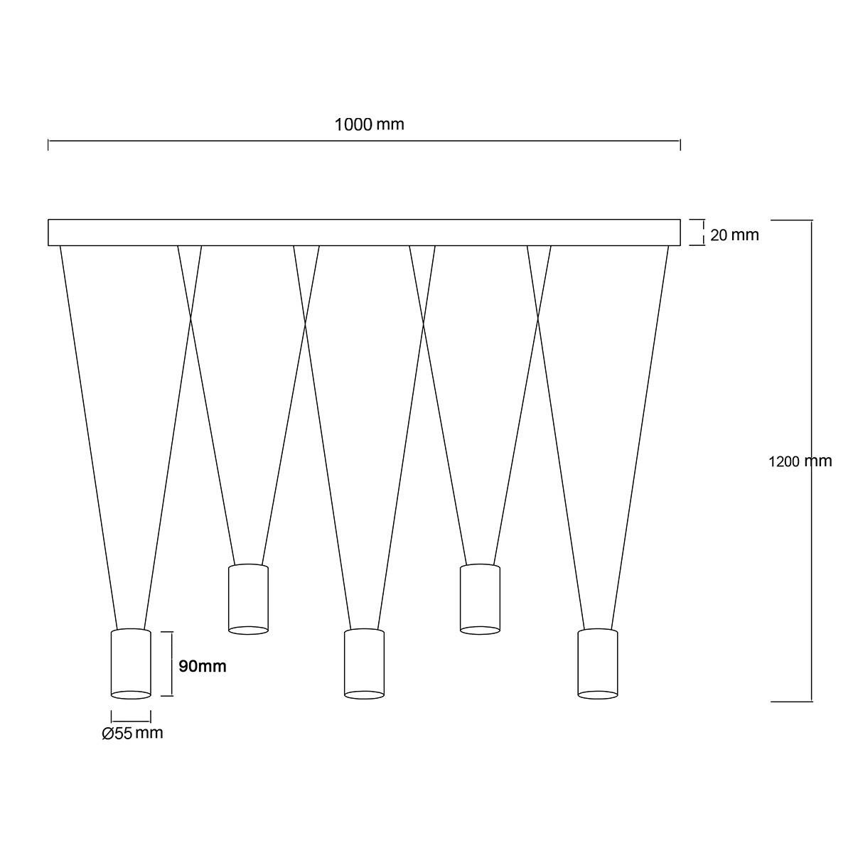 Lampa wisząca Toledo cechuje się imponującymi wymiarami, osiągającymi długość 120 cm, co sprawia, że stanowi idealne oświetlenie nad jadalnianym stołem lub w salonie, pełniąc rolę głównego punktu świetlnego. Została wykonana z metalu w czarnym kolorze. Źródłem światła jest pięć żarówek LED o gwincie GU10, o maksymalnej mocy 8W.