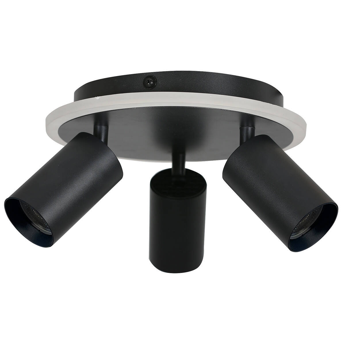 Plafon Parma 3 jest wykonany z metalu w czarnym kolorze. Posiada trzy ruchome reflektorki z możliwością wymiany obręczy. Do wyboru mamy czarne lub złote obręcze (obie wersje znajdują się w zestawie). Dodatkowo reflektory posiadaja regulację kąta nachylenia co sprawia, że można ustawić kierunek padania światła dokładnie w wymaganym kierunku, np. na biurko. Reflektorki posiadają miejsce na żarówki o gwincie GU10 oraz wbudowane światło LED o zmiennej barwie światła CCT, co oznacza że można ustawić dowolną barwę światła od ciepłej poprzez neutralną, aż po zimną. Barwę światła ustawia się przed montażem w podsufitce lampy.