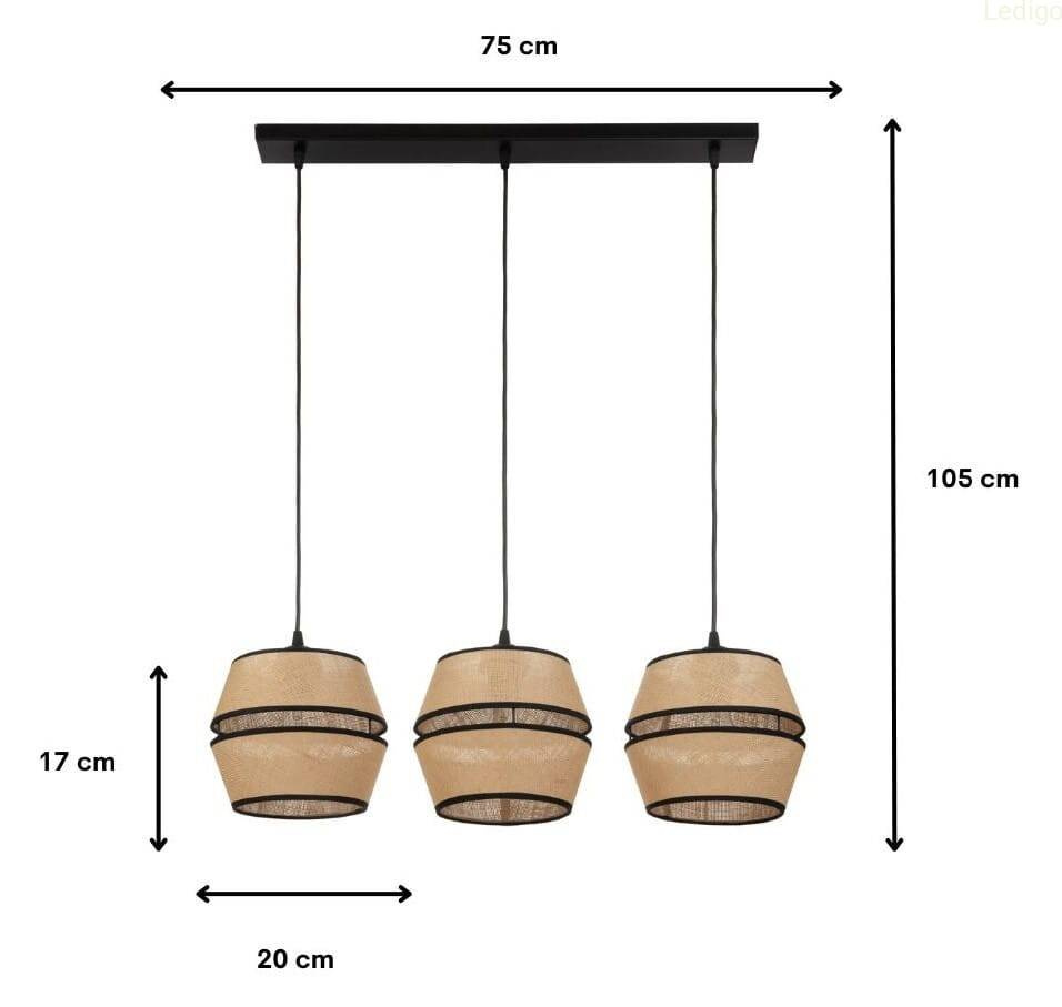 Lampa wisząca na listwie Wabi-Sabi 3xE27