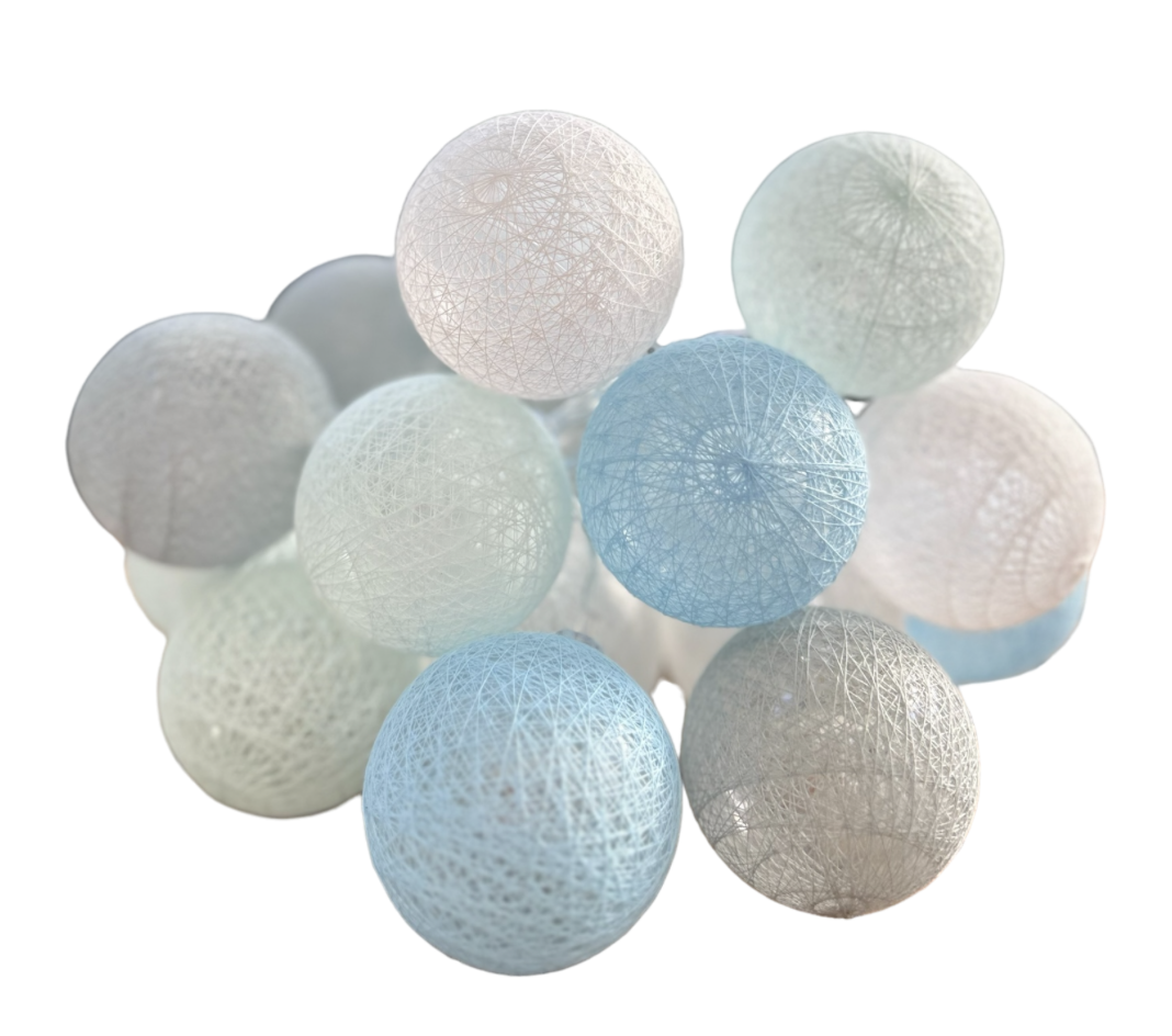 Lampki dekoracyjne COTTON BALLS 20xLED kule błękitne szare na baterie 3xAA