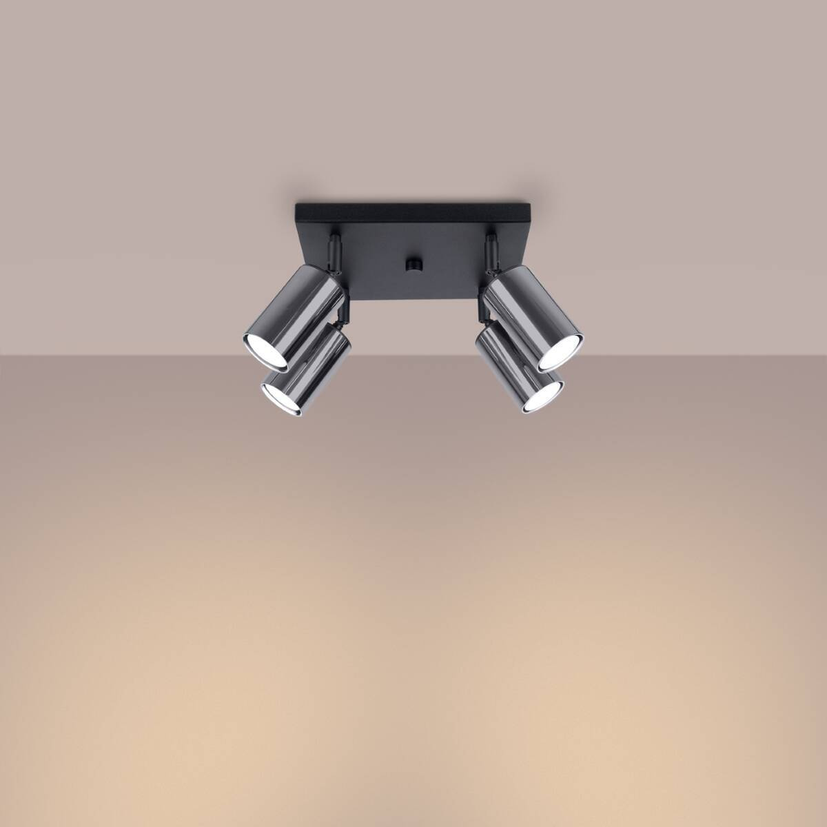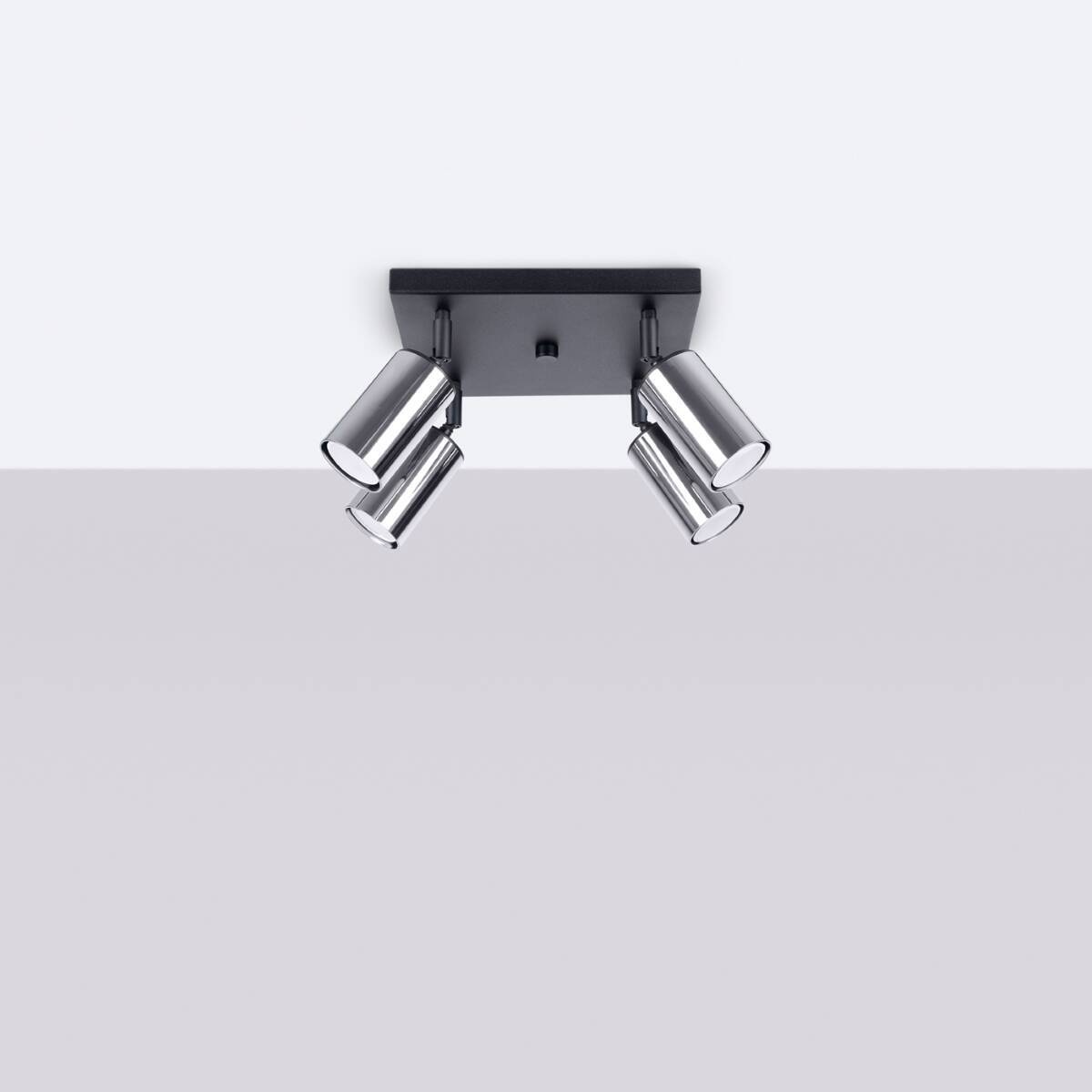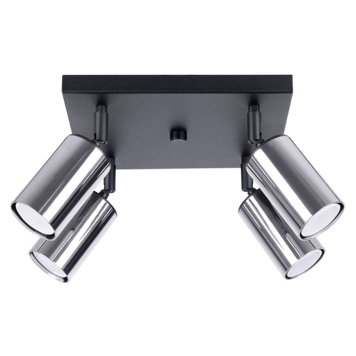 - Źródło światła: GU10, 4x max 10W LED, ~230V, 50Hz, IP20, klasa ochronności IŹródło światła nie jest w komplecie.Wymiary: 25/25/19 cmMateriał: stalKolor: czarny, chrom