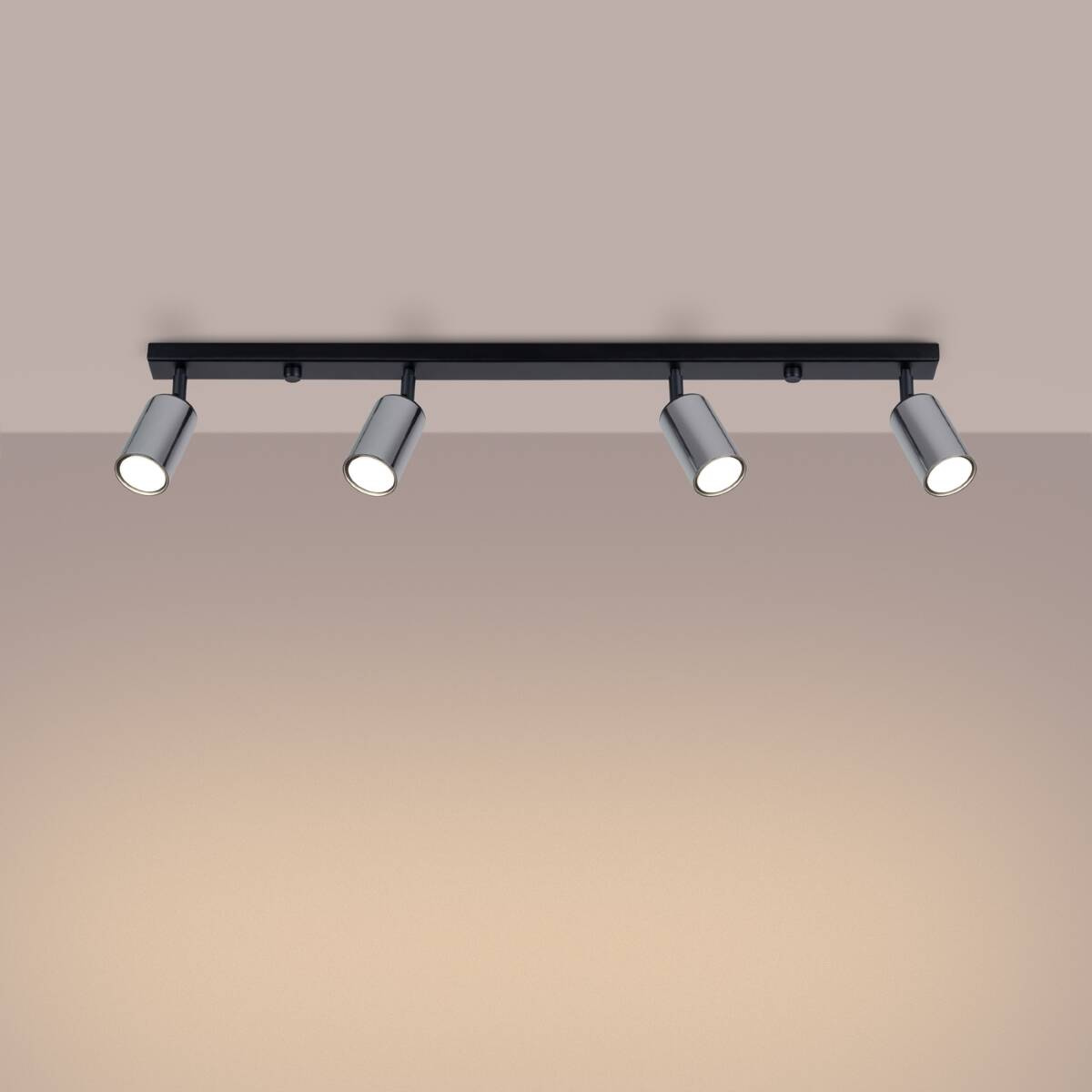 - Źródło światła: GU10, 4x max 10W LED, ~230V, 50Hz, IP20, klasa ochronności IŹródło światła nie jest w komplecie.Wymiary: 82/6/18,5 cmMateriał: stalKolor: czarny, chrom