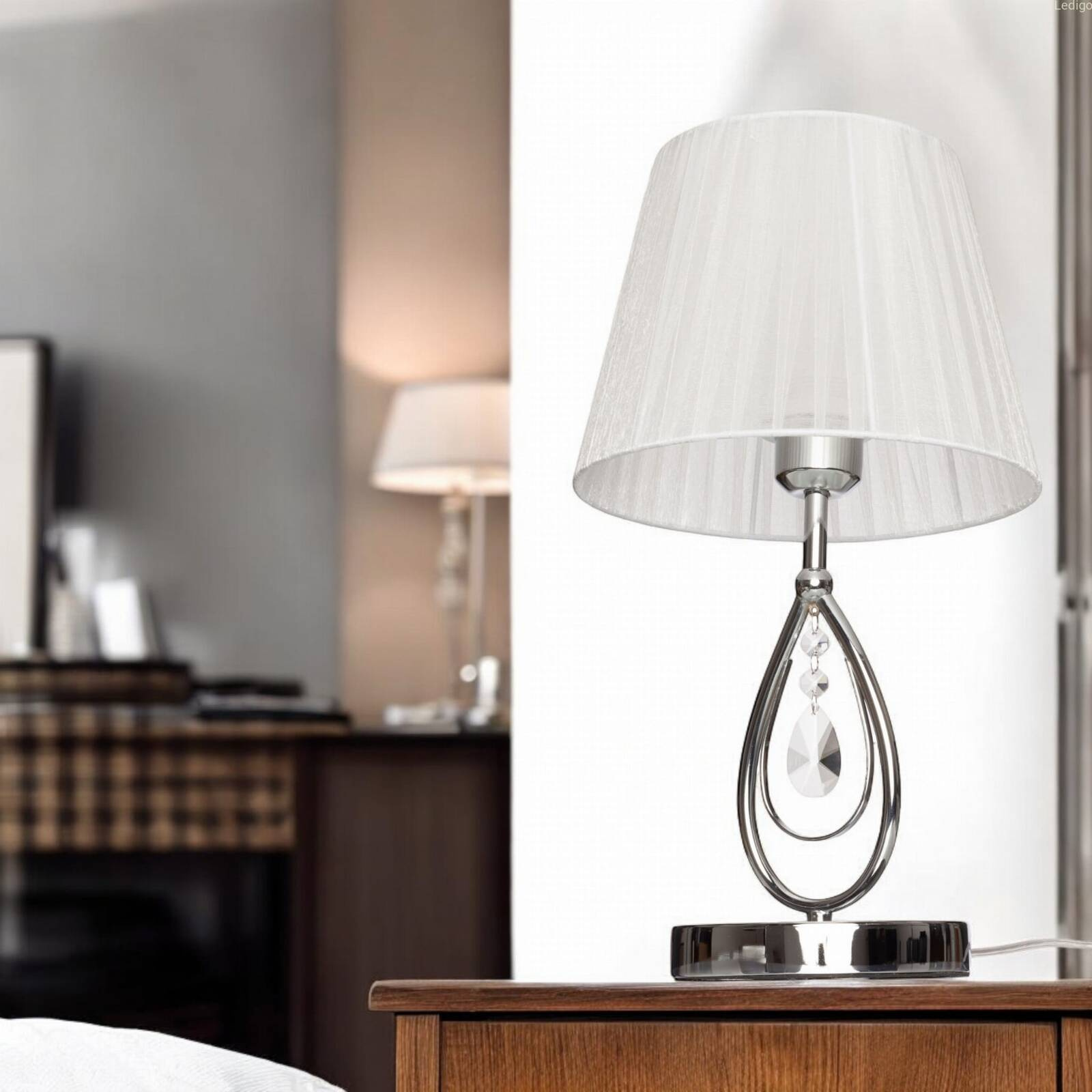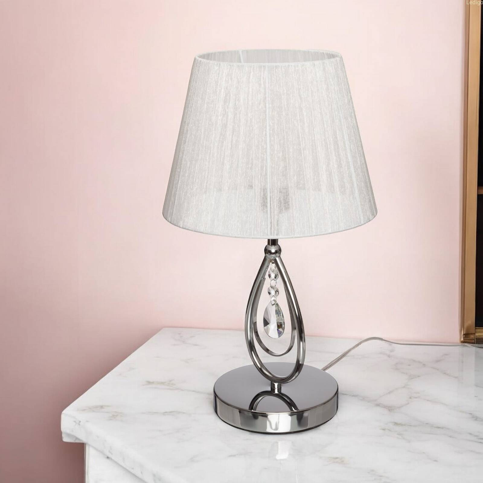 Lampka stołowa chromowana z białym plisowanym abażurem Wenecja E27