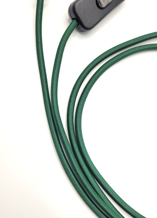 Przewód w oplocie dekoracyjnym 2,5m z włącznikiem ciemny zielony