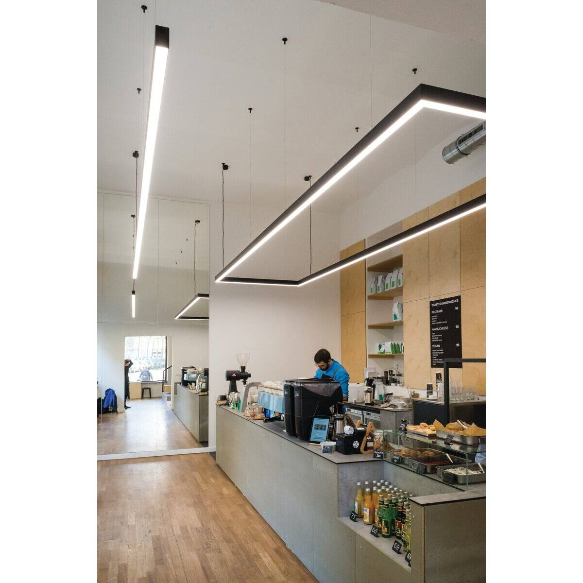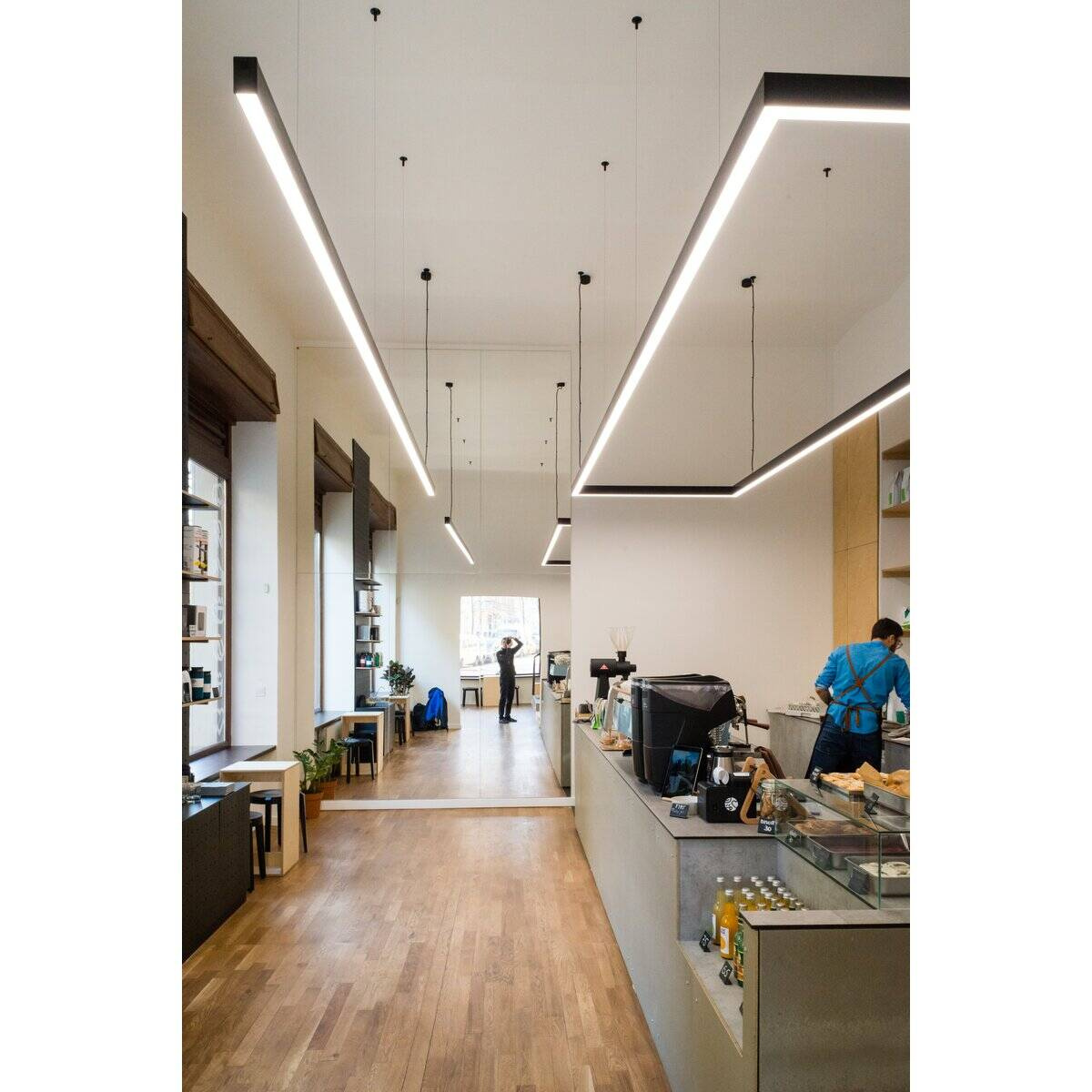 w podwieszeniu, za pomocą dedykowanej listwy montażowej i dedykowanych akcesoriów,możliwość łatwego łączenia w ciągi i systemy