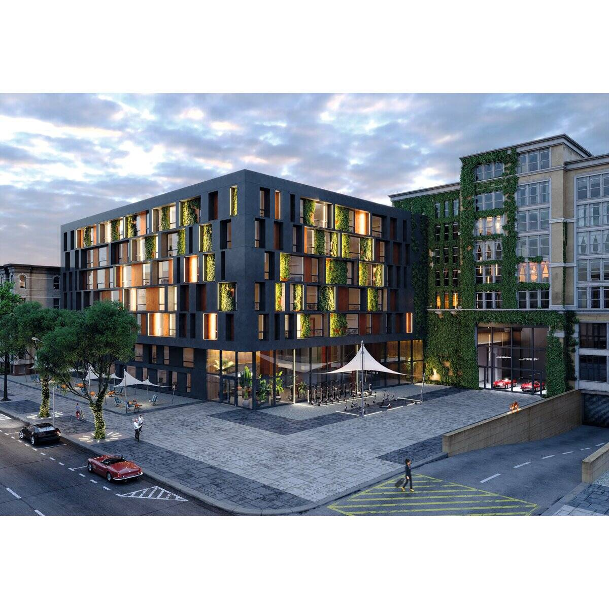 architektura miejska,oświetlenie fasady,oświetlenie ściany,architektura zielona