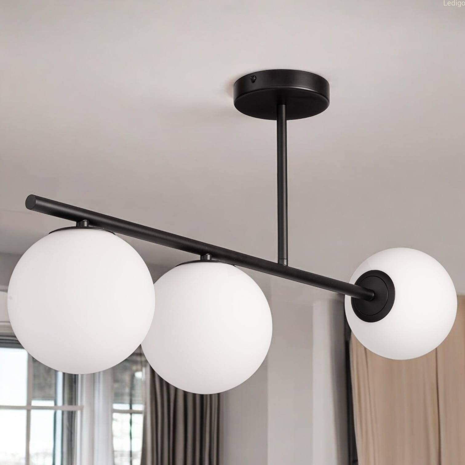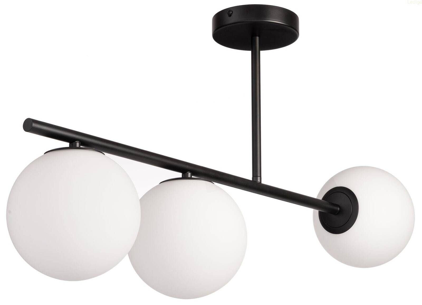Lampa sufitowa Milano czarna potrójna mleczne kule symetryczne 3xE14