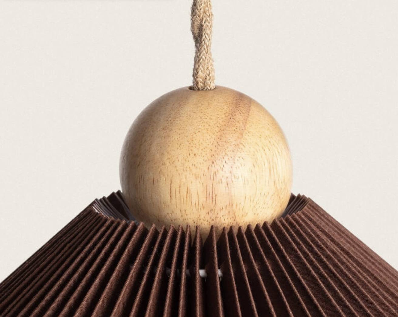 Lampa Wisząca Drewno i Materiał Luanda brązowa 47cm
