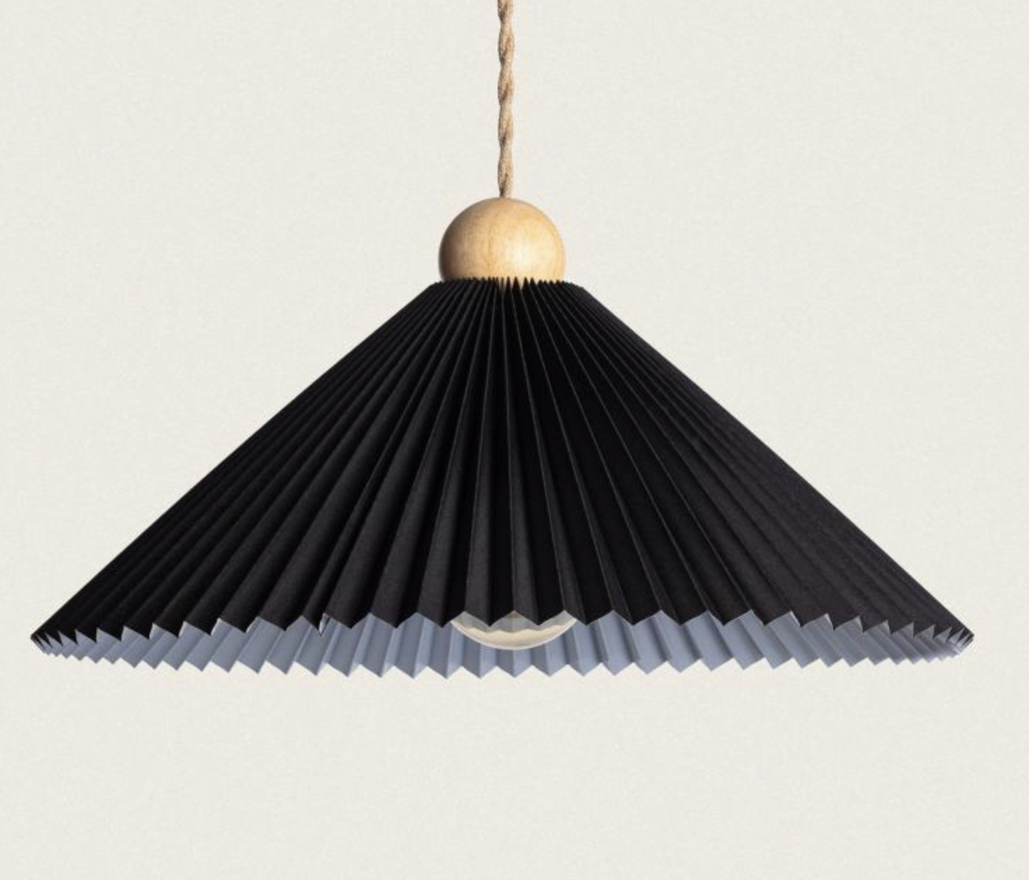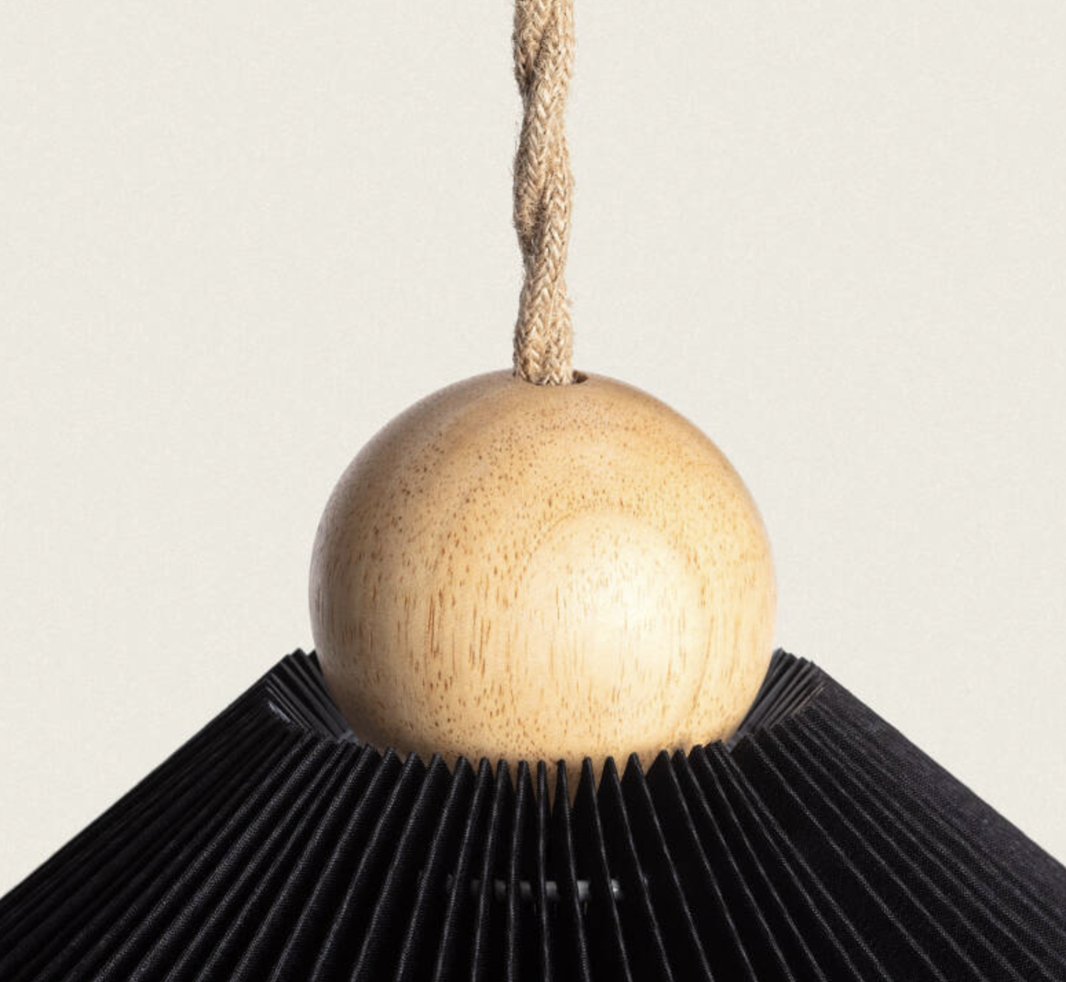 Lampa Wisząca Drewno i Materiał Luanda czarna 47cm