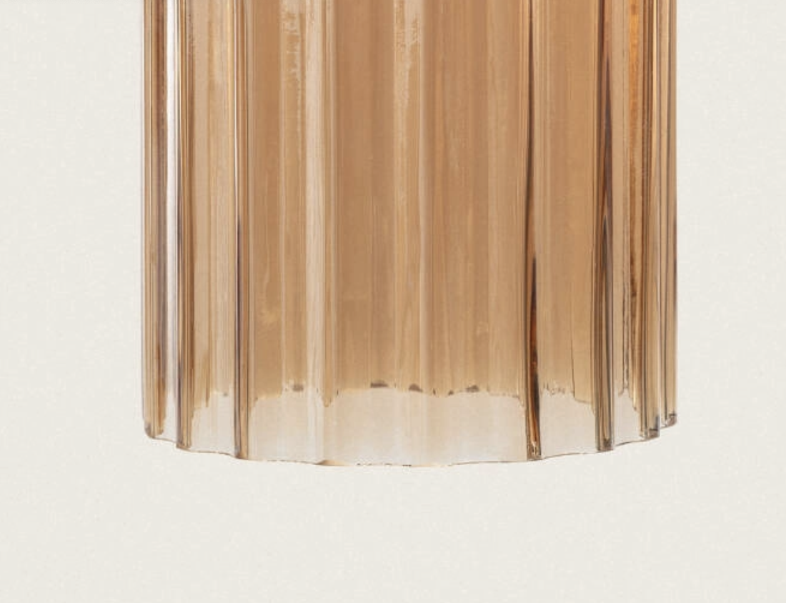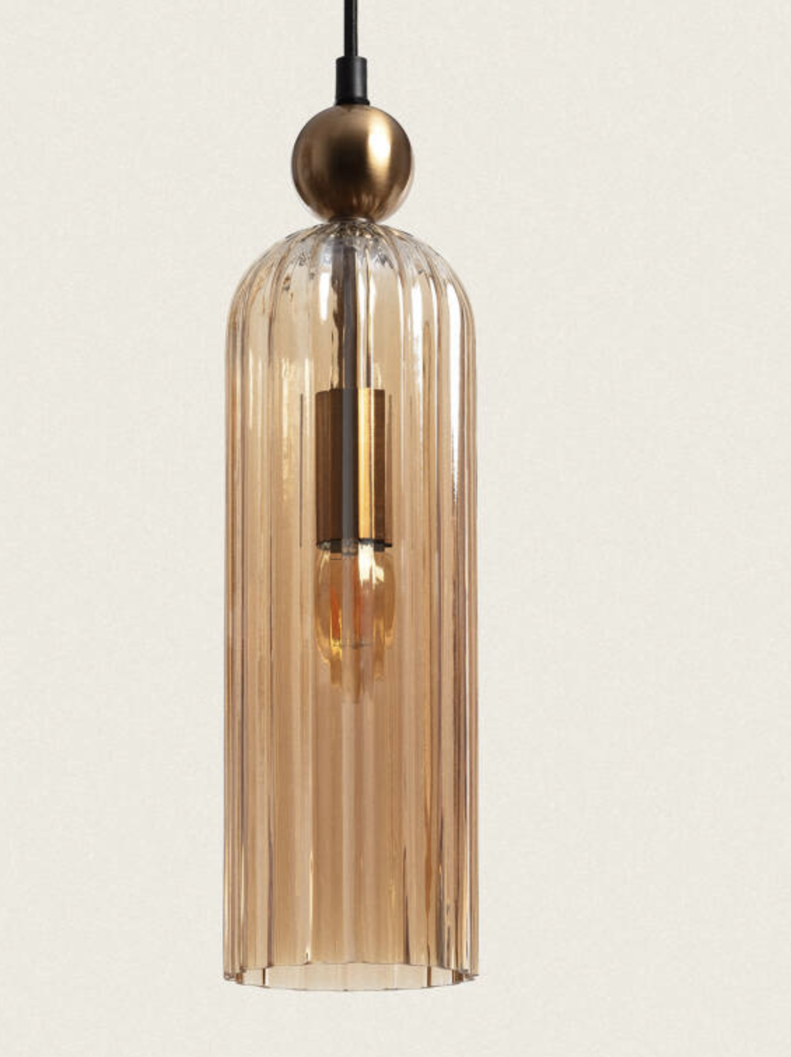Lampa Wisząca z Metalu i Szkła bursztynowa tuba Cheryl
