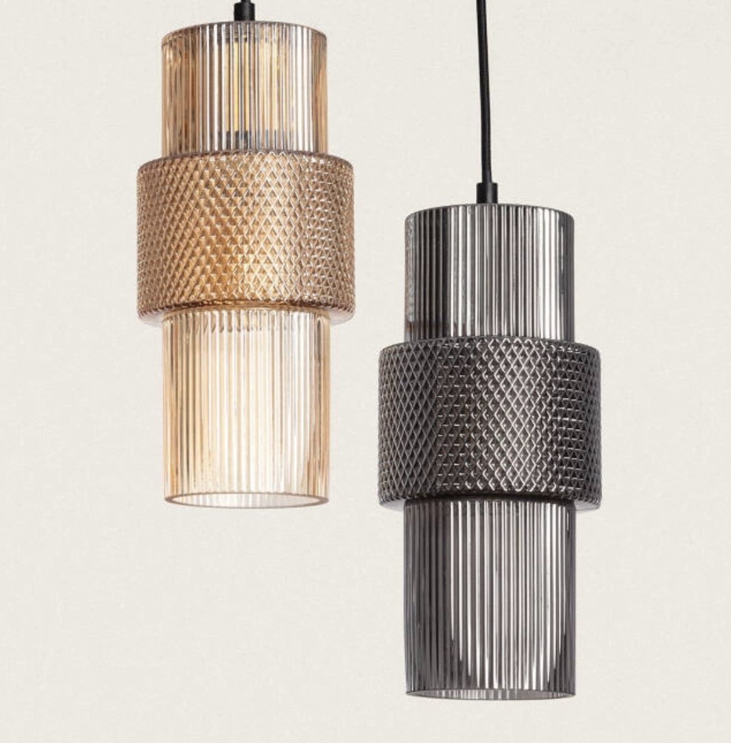Lampa Wisząca z Metalu i Szkła bursztynowa Berila