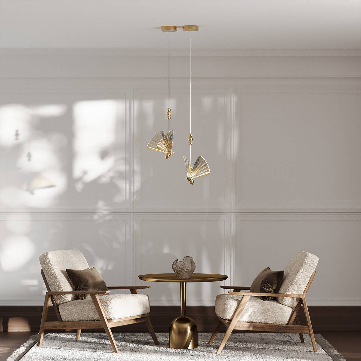 ,Pojedyncza lampa wisząca Mariposa to nie tylko oświetlenie, lecz przede wszystkim piękny i elegancki element dekoracyjny każdego pomieszczenia, w którym się znajduje. Wyposażona w światło LED umieszczone w motylich skrzydłach oferuje zmienną barwę światła (CCT - Correlated Color Temperature). Dzięki technologii CCT możliwe jest wybranie barwy światła pomiędzy ciepłą, neutralną, a zimną, przed montażem w podsufitce lampy. Lampa wykonana jest z transparentnego akrylu z kolorowymi elemntami i metalu w kolorze złota, tworząc wyjątkowo eleganckie połączenie materiałów.