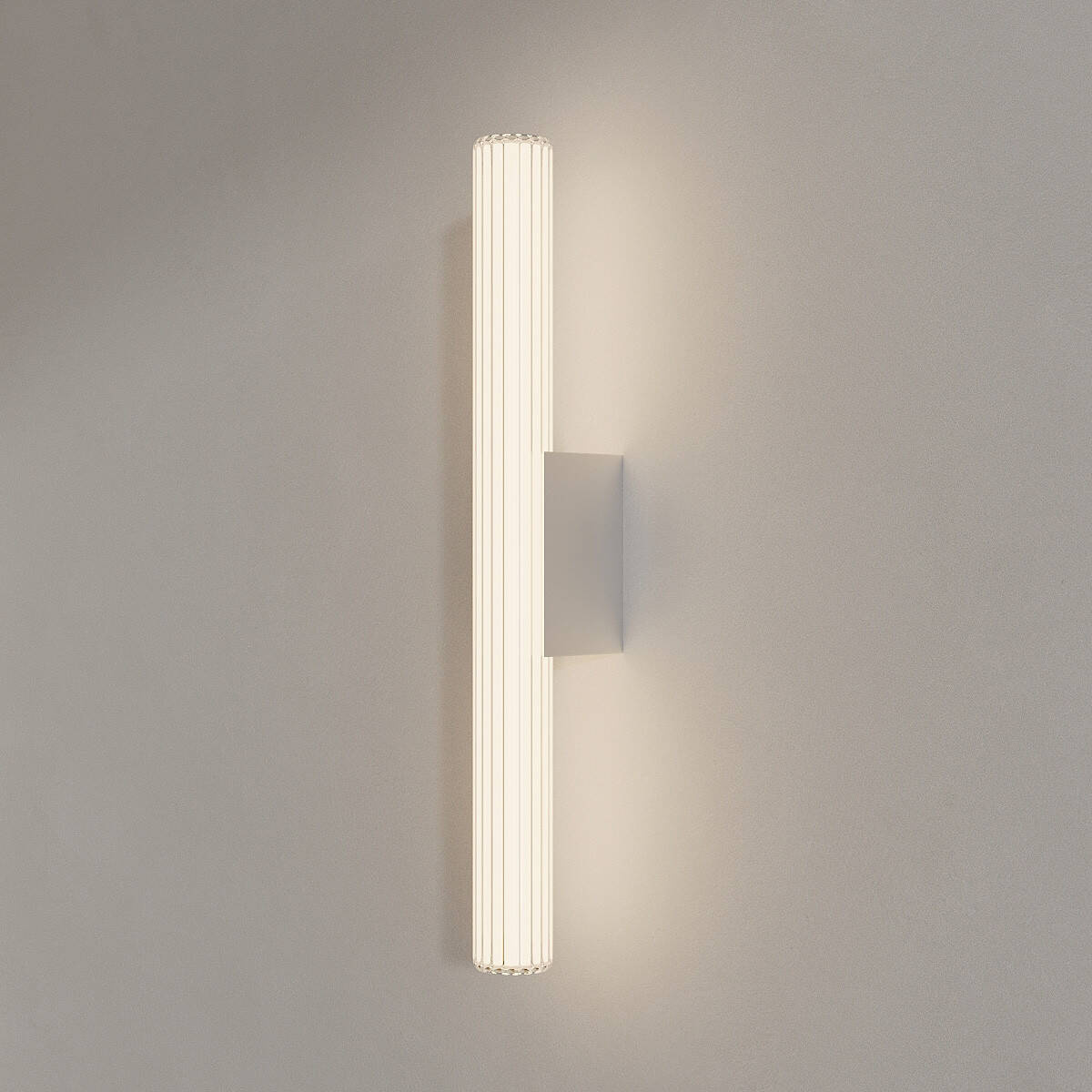 Kinkiet Linea to idealne rozwiązanie dla tych, którzy cenią nowoczesny styl i funkcjonalność. Jego szklany klosz w formie tuby wyróżnia się delikatnym wzorem pionowych kreseczek. Dzięki wbudowanemu oświetleniu LED CCT, kinkiet oferuje możliwość wyboru odpowiedniej barwy światła w zależności od potrzeb – od ciepłego, przez neutralne, aż po zimne światło. Solidna metalowa podsufitka zapewnia stabilne mocowanie i wpisuje się w nowoczesną estetykę.