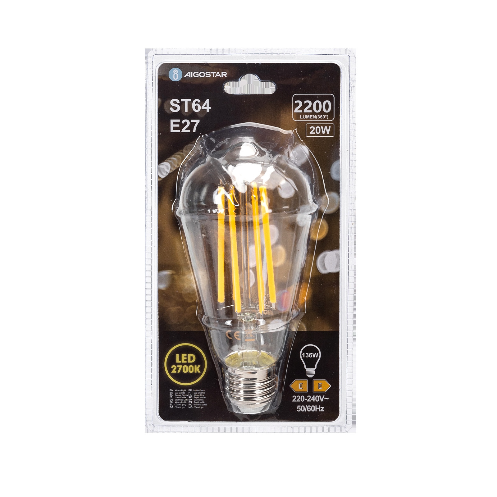 Żarówka LED Filament Przezroczysta ST64 E27 20W ciepła