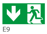 Piktogram WYJŚCIE W DÓŁ LEWO - E9 (300X150mm) / 97998