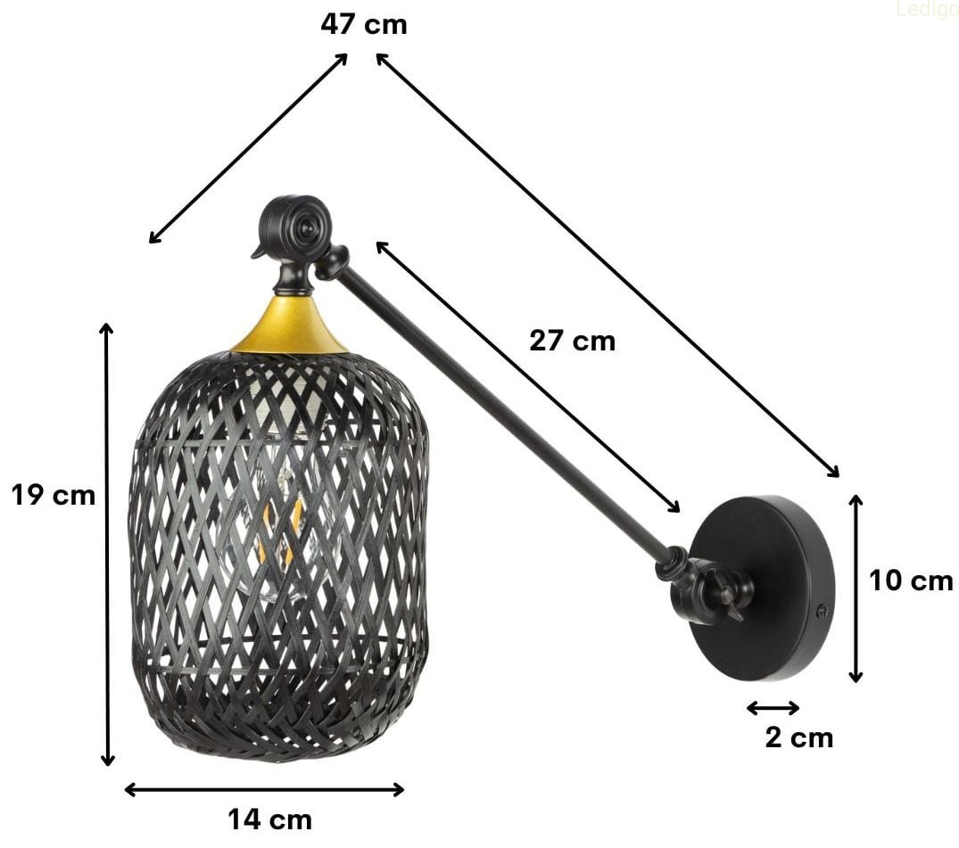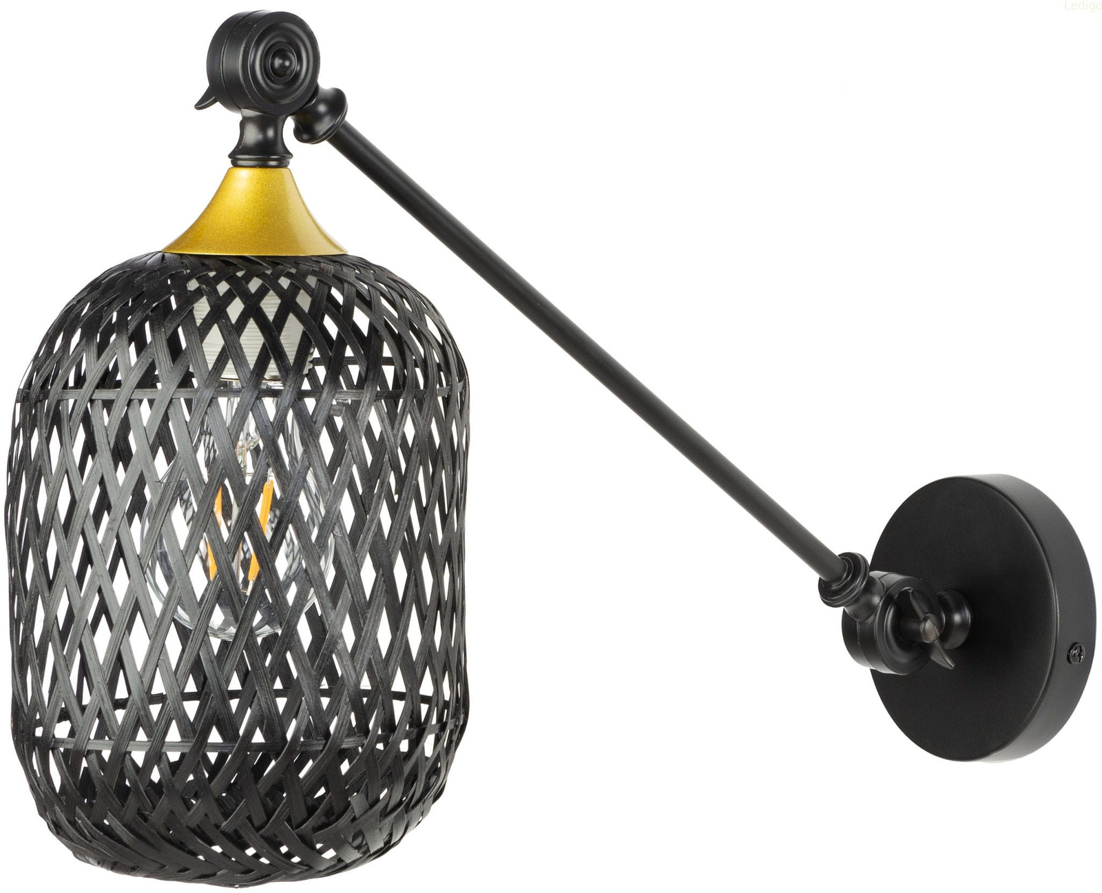 Kinkiet regulowany Rustic czarny klosz bambusowy