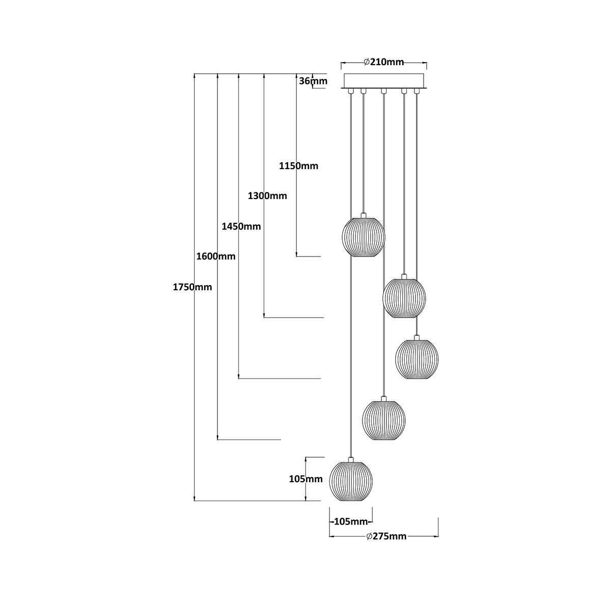 Konstrukcja lampy wiszącej Brillant wykonana została z metalu w złotym odcieniu, uzupełniona akrylowymi kloszami z prostym żłobieniem w formie kreseczek, co nadaje jej niepowtarzalny urok oraz elegancję. Transparentny kabel doskonale komponuje się z resztą elementów lampy, tworząc spójną całość.