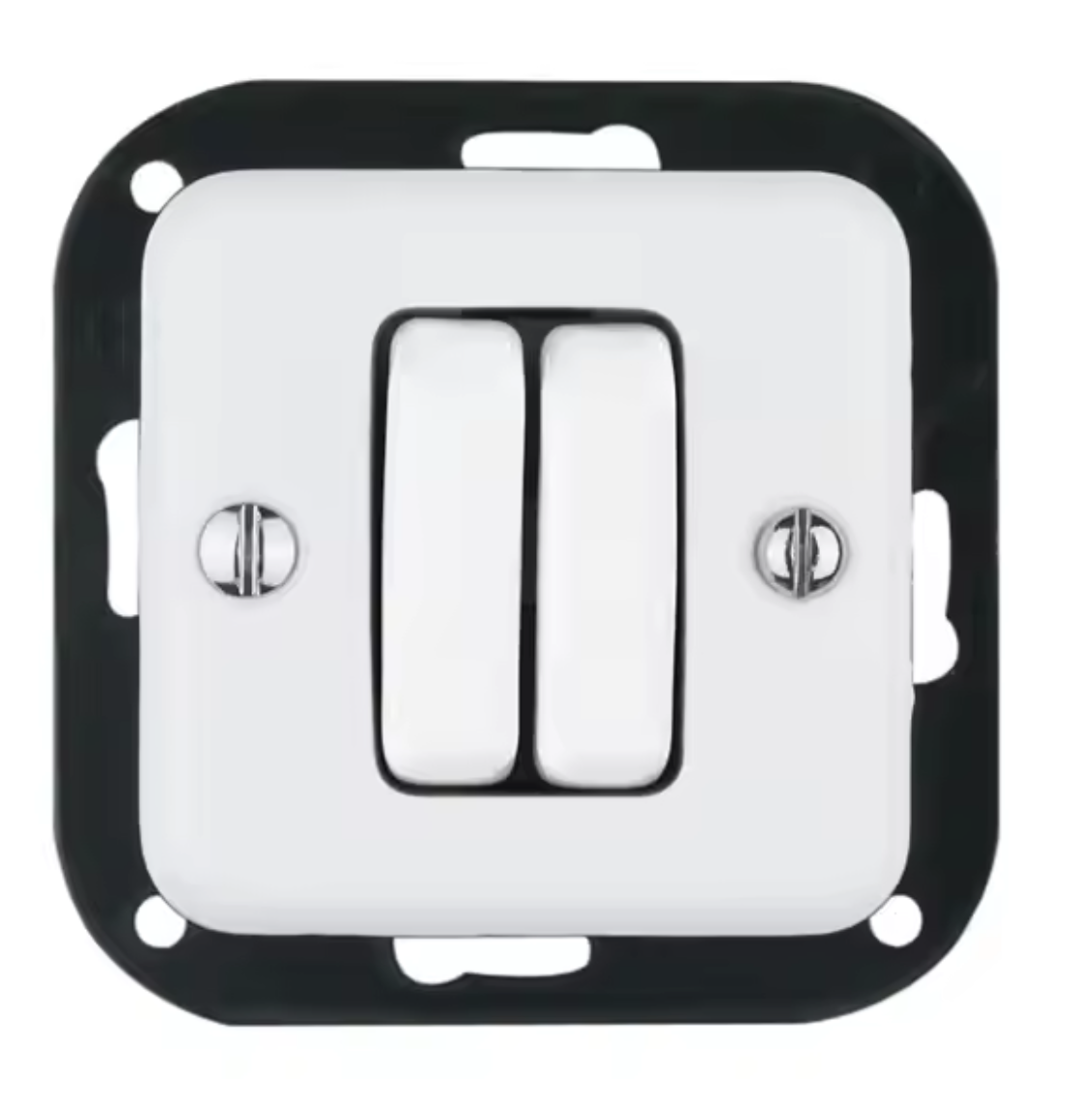 Włącznik ceramiczny podtynkowy podwójny schodowy kwadrat biały bez ramki