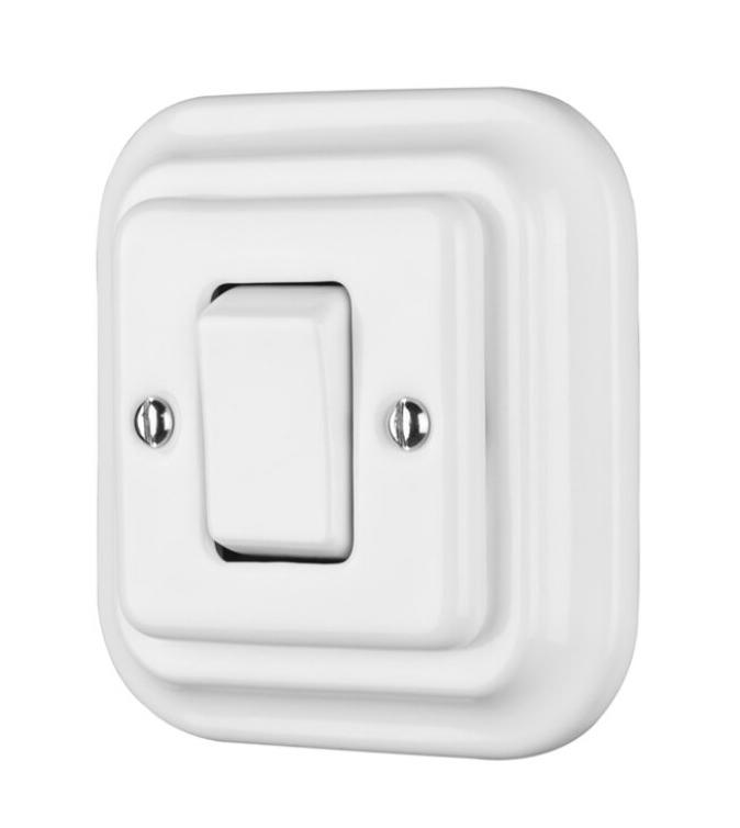 Włącznik ceramiczny podtynkowy krzyżowy kwadrat biały bez ramki