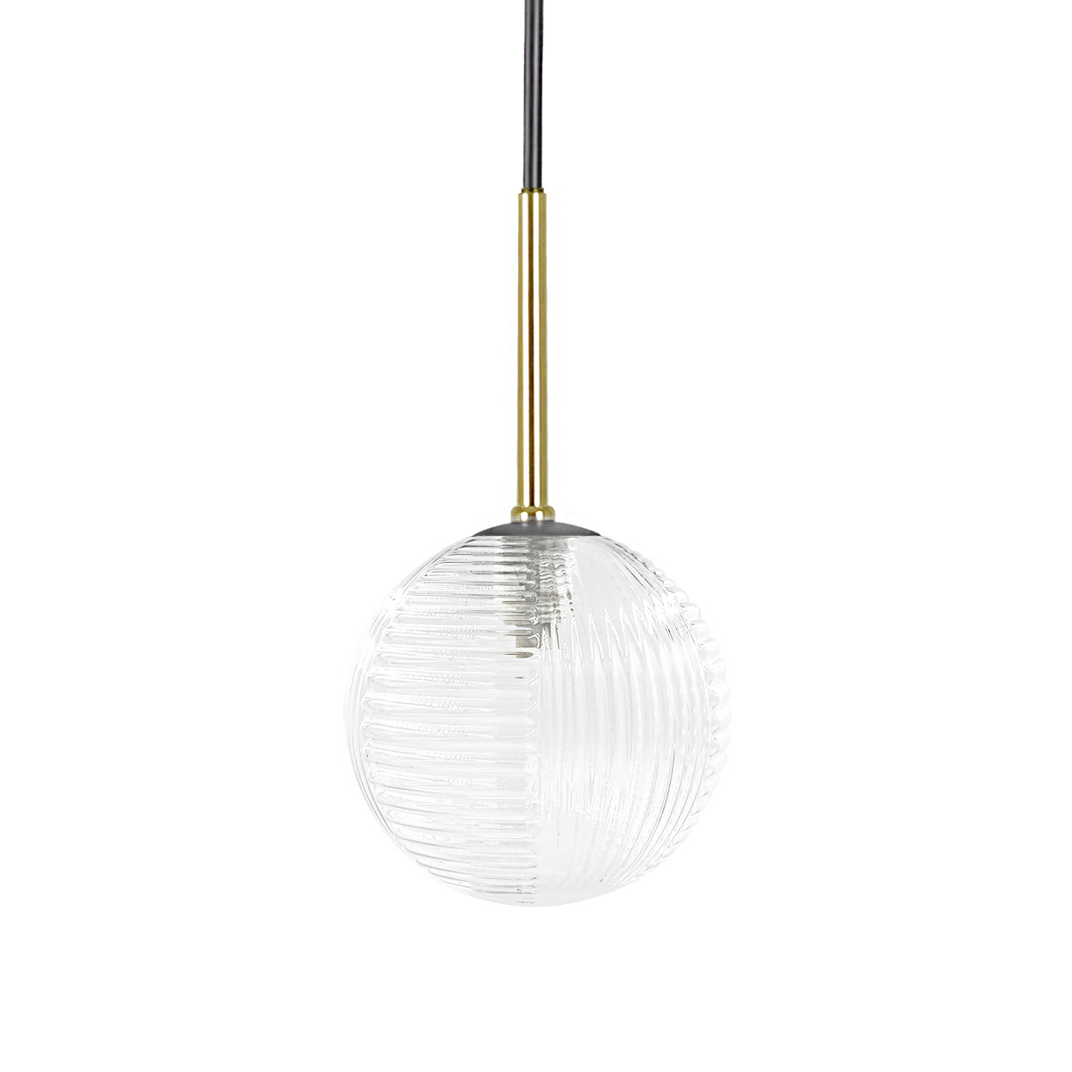 - Transparentny, ryflowany klosz – efektownie rozprasza światło i podkreśla design lampy.