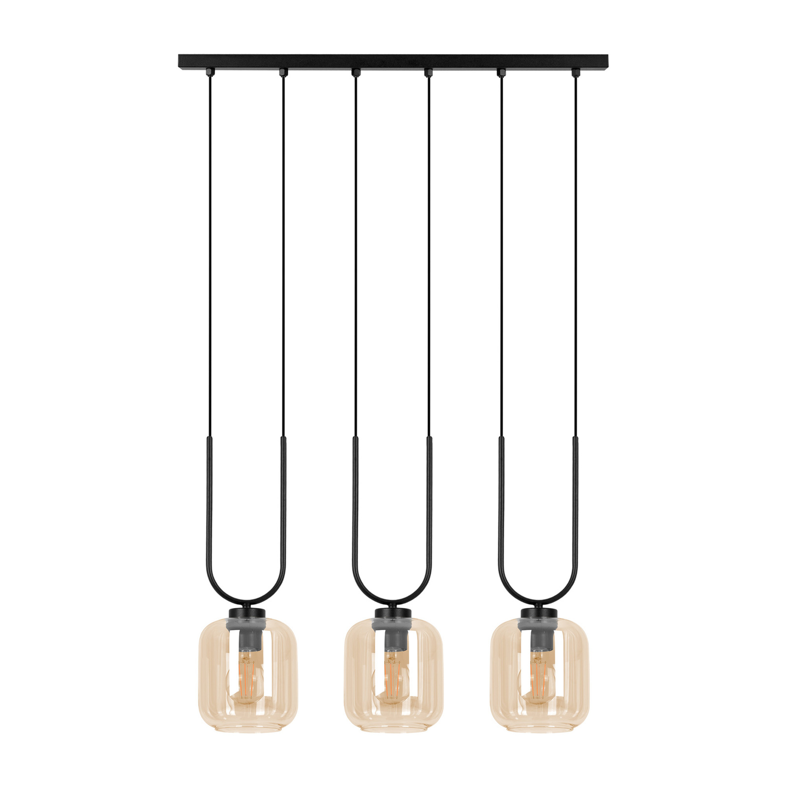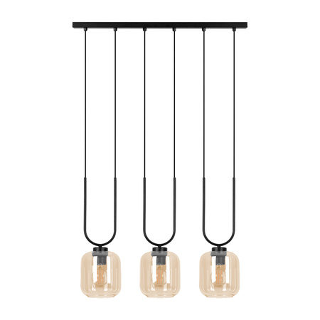 Lampa wisząca K-5581 z serii CONI to elegancka i nowoczesna oprawa, która doskonale komponuje się w loftowych oraz minimalistycznych wnętrzach. Wykonana z metalowej belki w głębokim czarnym kolorze, z której zwisają trzy szklane klosze o transparentnym miodowym odcieniu, tworzy wyjątkowy efekt świetlny. Całość zapewnia nie tylko nowoczesny wygląd, ale i funkcjonalność, wpisując się w wymagania współczesnych aranżacji.