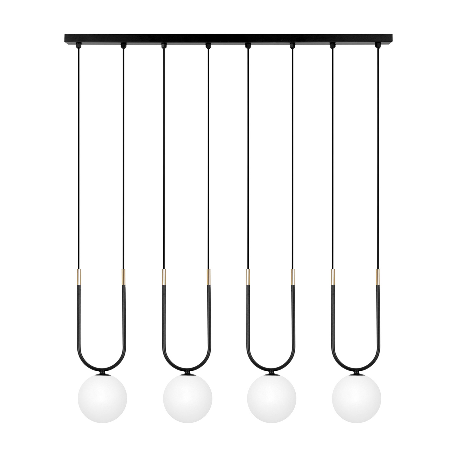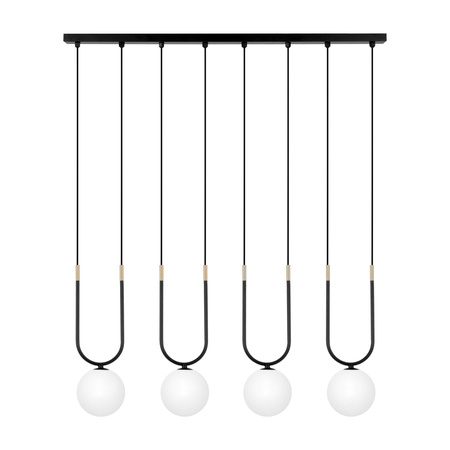 Lampa wisząca K-5592 z serii ENZO to doskonałe połączenie nowoczesnego designu i elegancji. Zbudowana w formie belki z subtelnymi kulistymi zwisami, stanowi efektowną ozdobę każdego wnętrza. Metalowa, czarna konstrukcja ze złotymi akcentami oraz białe, szklane klosze tworzą harmonijną całość, która wprowadza do przestrzeni wyrafinowaną atmosferę. Klosze o średnicy 12 cm łagodzą ostrą formę, tworząc przyjemną i elegancką całość. Takie połączenie kolorów idealnie wkomponowuje się w stylowe wnętrza utrzymane w klimacie glamour, loftowym lub współczesnym.