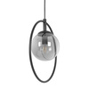 Podstawowym elementem tej lampy jest pojedyncza szklana kula, zamocowana w czarnej metalowej ramie w kształcie okręgu. Okrąg ten, będący jedną z dominujących cech wizualnych tej lampy, przyciąga wzrok swoją geometryczną formą, która tworzy harmonijną kompozycję. Czarne, matowe wykończenie ramy nadaje całości elegancji i nowoczesnego charakteru.