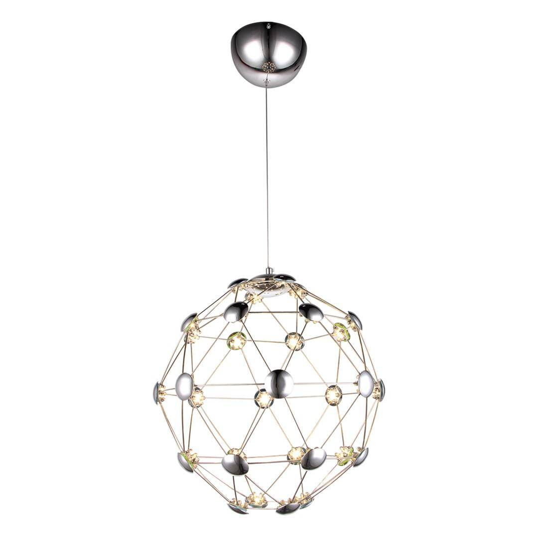 ,Lampa została zaprojektowana zgodnie z nowoczesnym designem. Jej unikalna forma będzie stanowić ciekawy element dekoracyjny wielu pomieszczeń, m.in. salonu, sypialni, a także biura. Na klosz składają się metalowe kulki połączone drutem, które tworzą kulę.