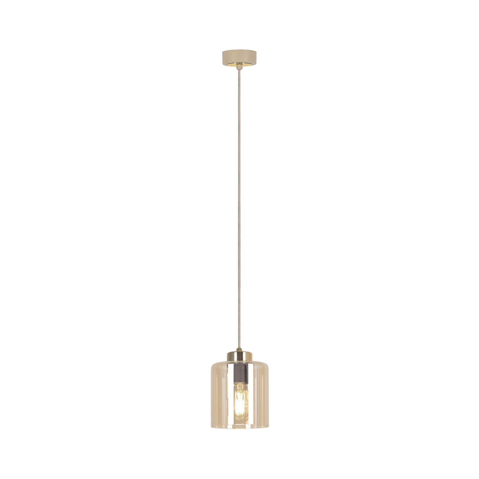 Beżowa lampa wisząca z kloszem i złotym detalem K-5810 z serii VANES