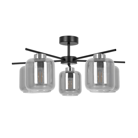 Połączenie czarnej, metalowej konstrukcji z grafitowymi, przezroczystymi kloszami oraz srebrnymi elementami nadaje lampie eleganckiego, a zarazem industrialnego charakteru. Taka estetyka doskonale komponuje się z wnętrzami w stylu nowoczesnym, loftowym i minimalistycznym.