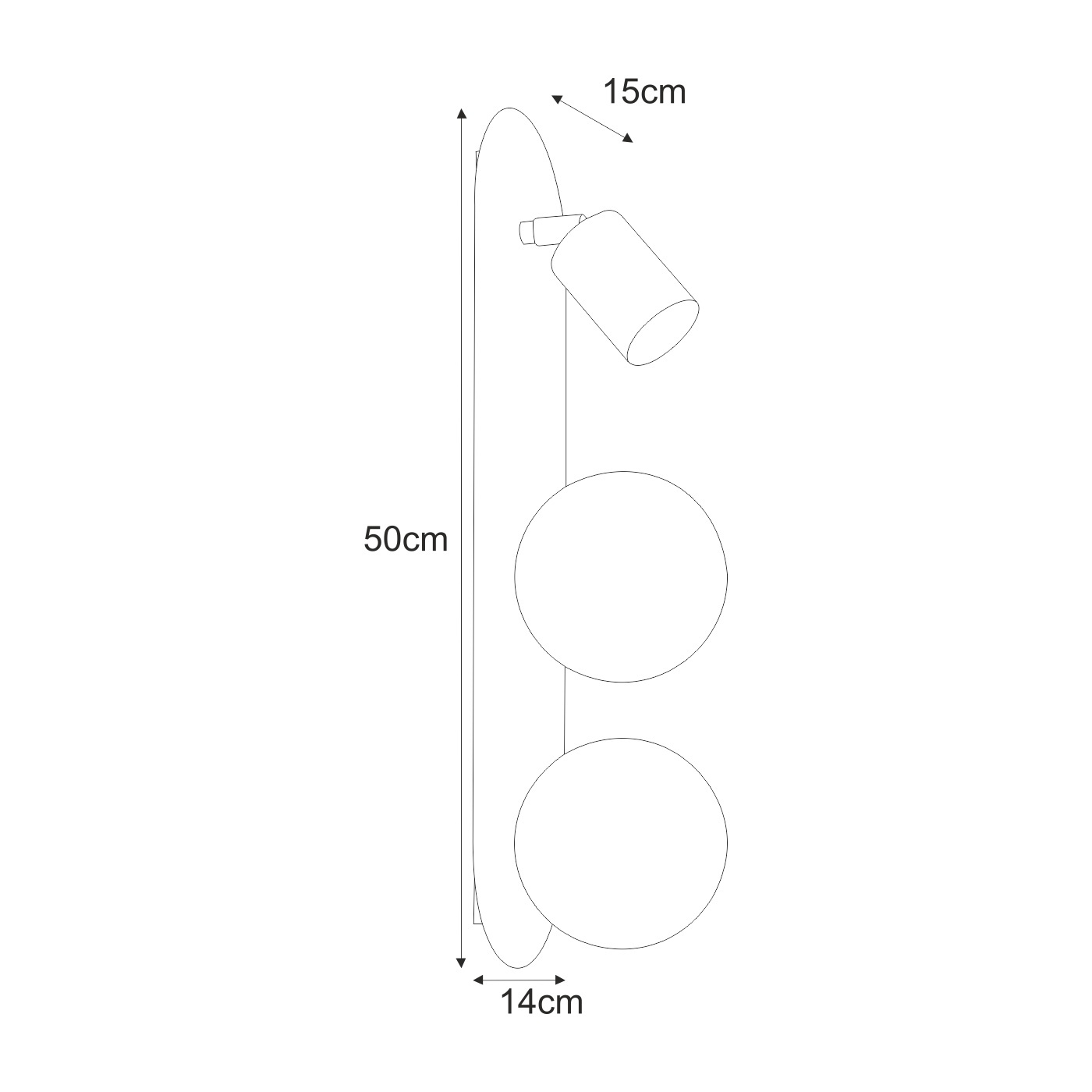 - Wymiary: Wysokość 50 cm, szerokość 14 cm, głębokość 15 cm, średnica kloszy 12 cm.