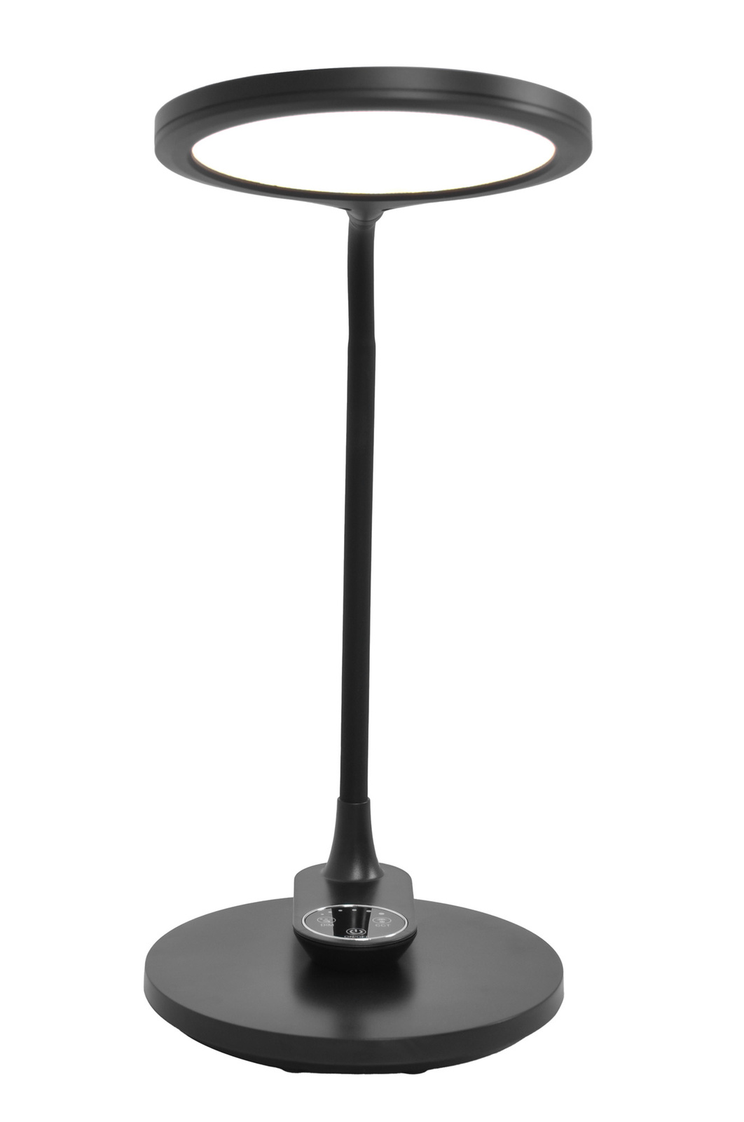 Lampa GAJA wyposażona jest także w bezstopniową funkcję ściemniania, co oznacza, że jasność światła może być precyzyjnie dostosowywana w zależności od potrzeb. Możliwość regulacji intensywności światła jest niezwykle przydatna w codziennym użytkowaniu, pozwalając na tworzenie odpowiedniej atmosfery zarówno w trakcie intensywnej pracy, jak i podczas wieczornego relaksu. Wszystkie te funkcje są sterowane za pomocą dotykowego panelu umieszczonego na podstawie lampy, co zapewnia wygodę i intuicyjność obsługi. Panel umożliwia szybkie i łatwe dostosowanie parametrów oświetlenia, a nowoczesne wzornictwo panelu wpisuje się w elegancki wygląd całego produktu.