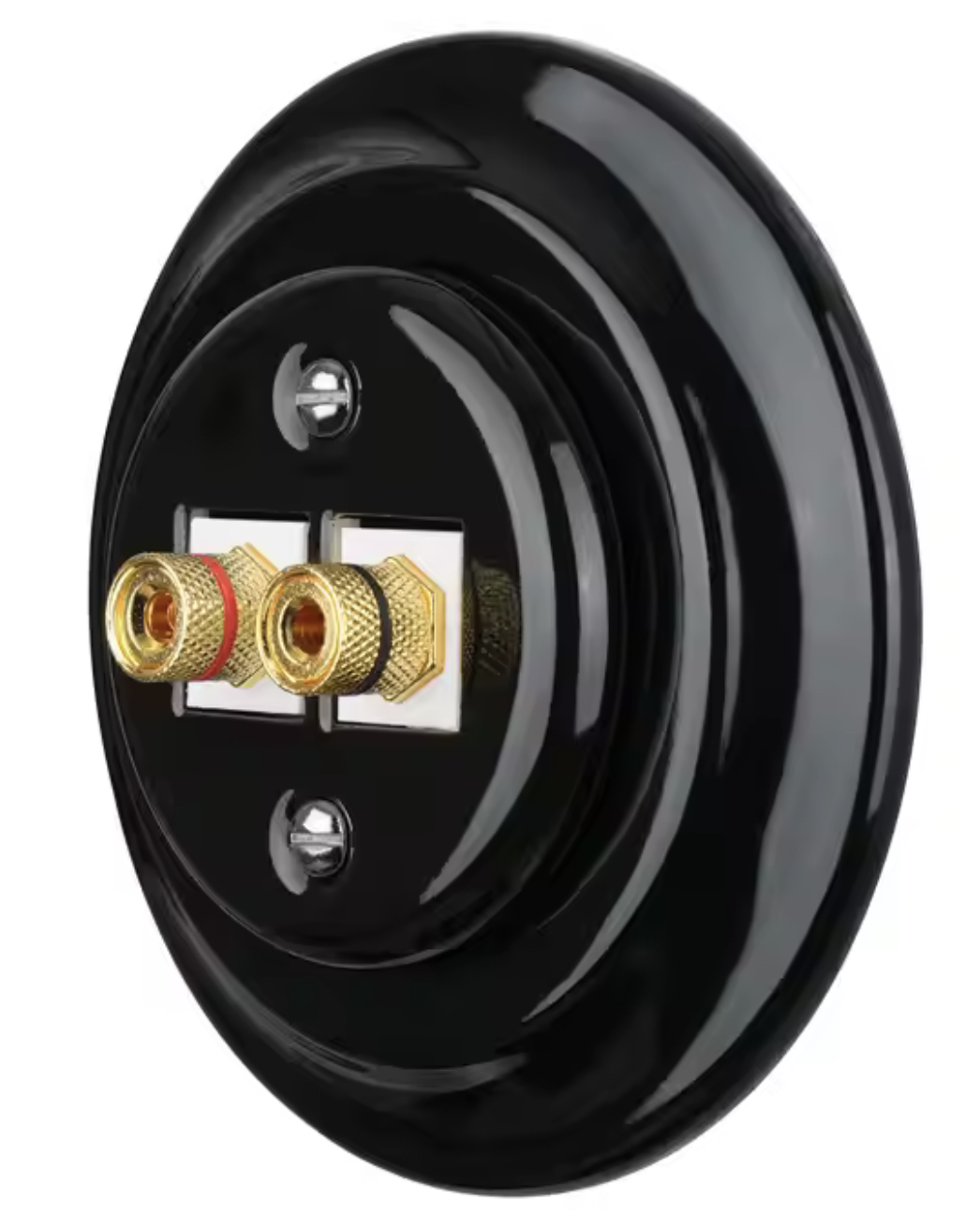 Gniazdo ceramiczne podtynkowe głośnikowe czarne retro bez ramki