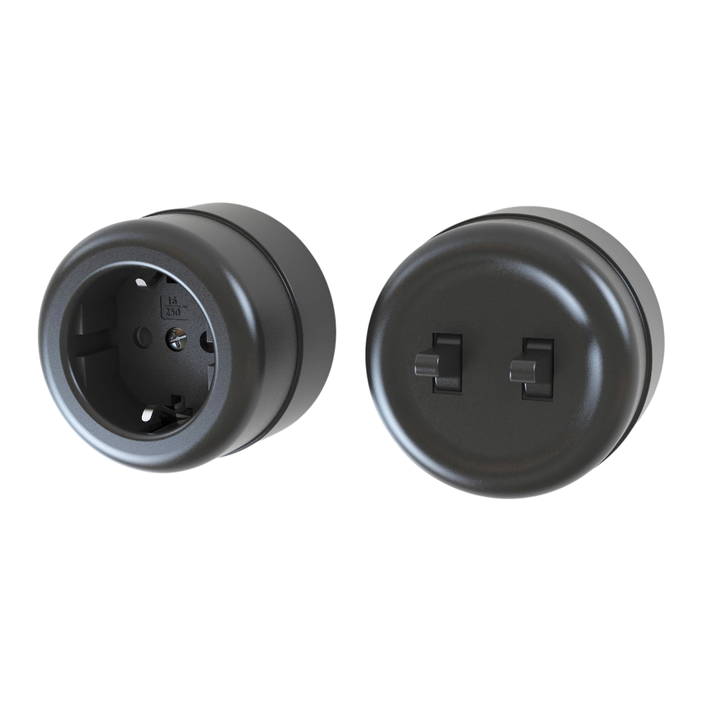 Gniazdo natynkowe z uziemieniem Schuko czarne Loftica Art