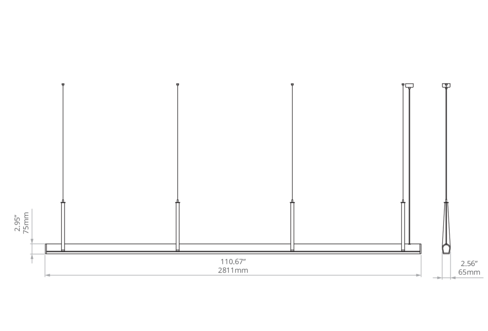 Kluś Lampa wisząca LED Tulip TU BEAM ZW L=2811mm, DOT/Blenda, 25W, 4000K, DALI, CZARNY