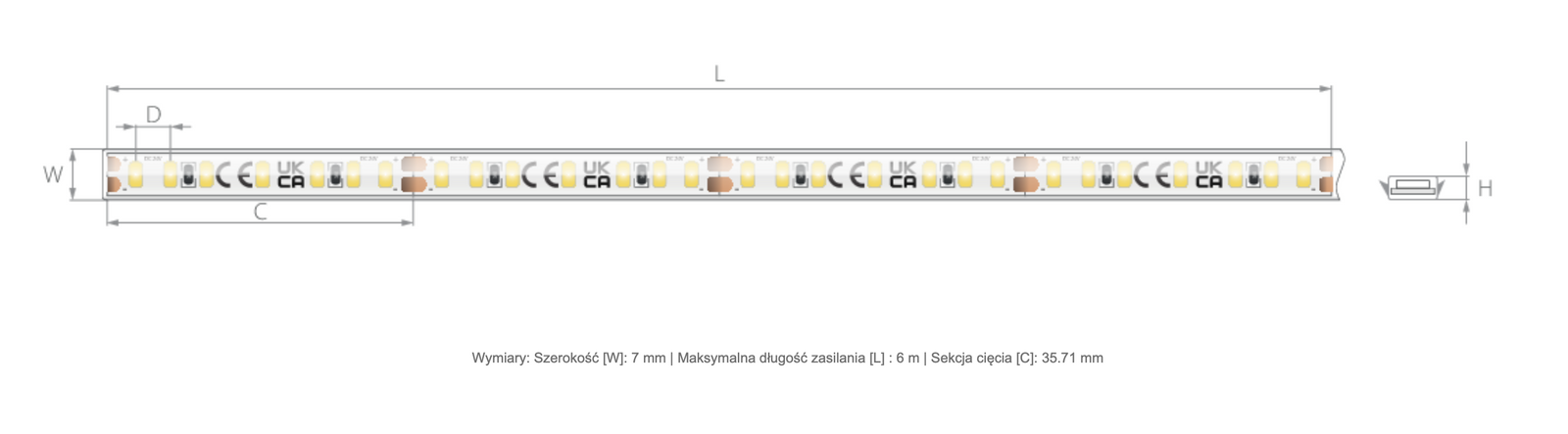 Taśma LED hermetyczna KWP-5K30-0450-24 ciepła 3000K ultracienka 7mm 4,5W/m 24V