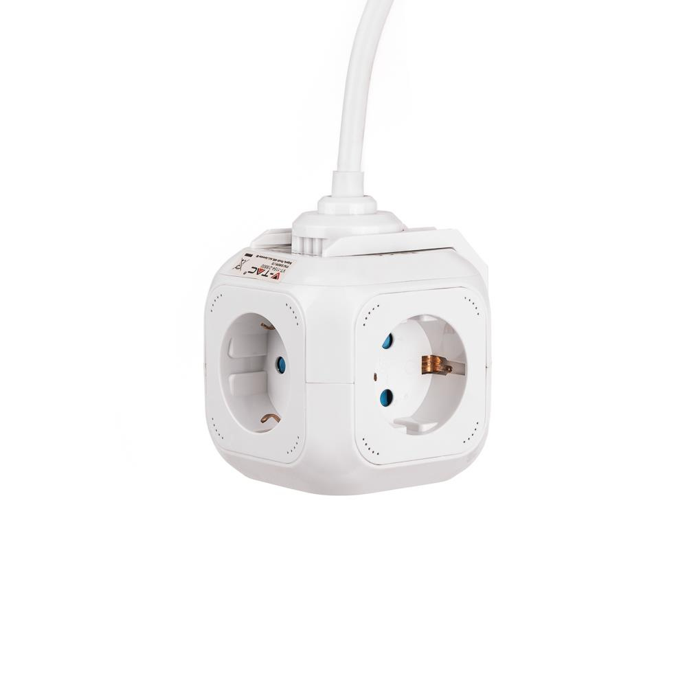 Przedłużacz Kostka 4 gniazda 2 gniazda USB 1.55MM 1.4M V-TAC VT-1154-2