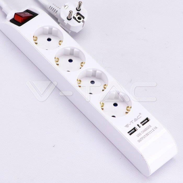 Listwa V-TAC 4 Gniazda 1,4m , Podświetlany Włącznik, 2xUSB 1.5mm2 BIAŁA VT-1144-2