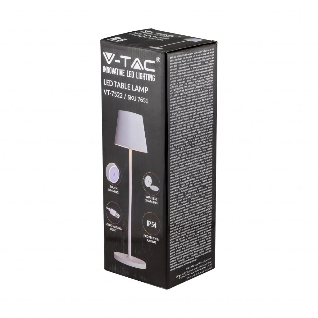 Lampka Biurkowa Nocna V-TAC 2W LED Ładowanie Ściemnianie IP54 Biała VT-7522 3000K 200lm