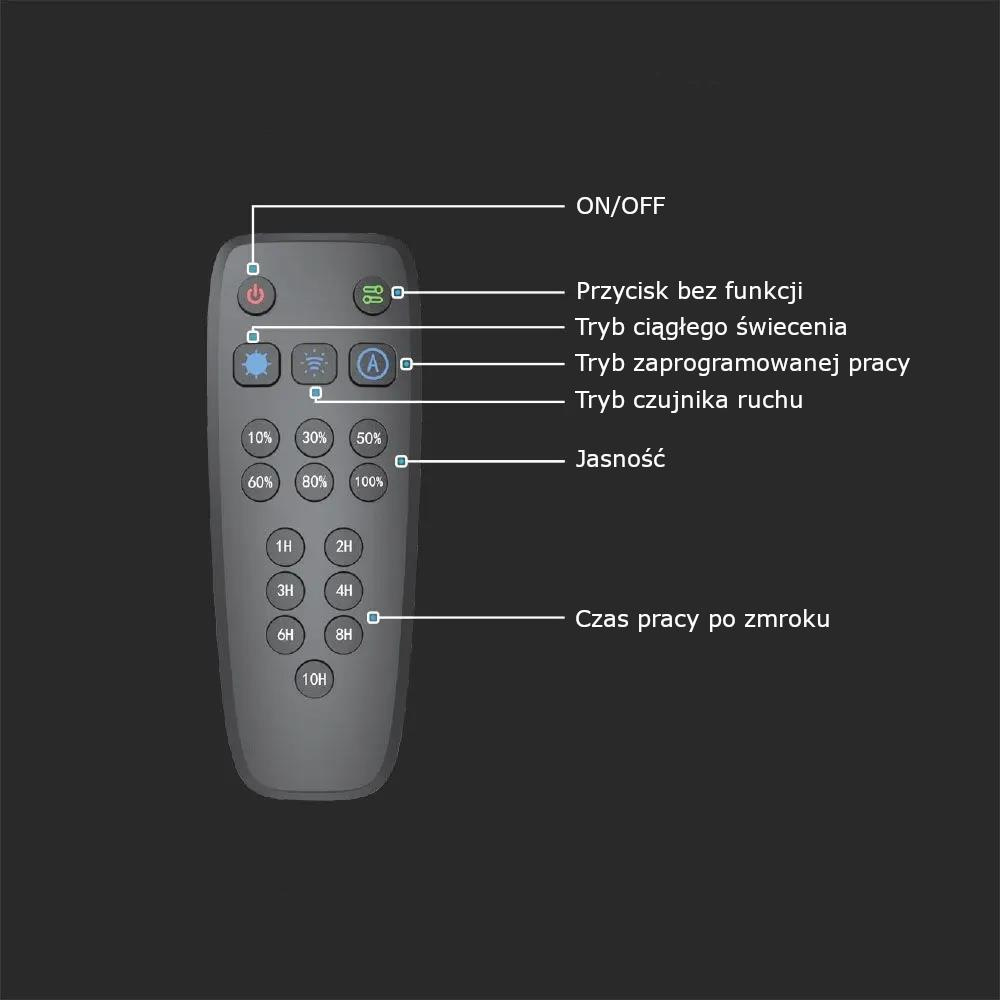 Oprawa Ogrodowa Parkowa V-TAC 20W Czujnik Ruchu Pilot VT-130W 6400K 2000lm 5 Lat Gwarancji