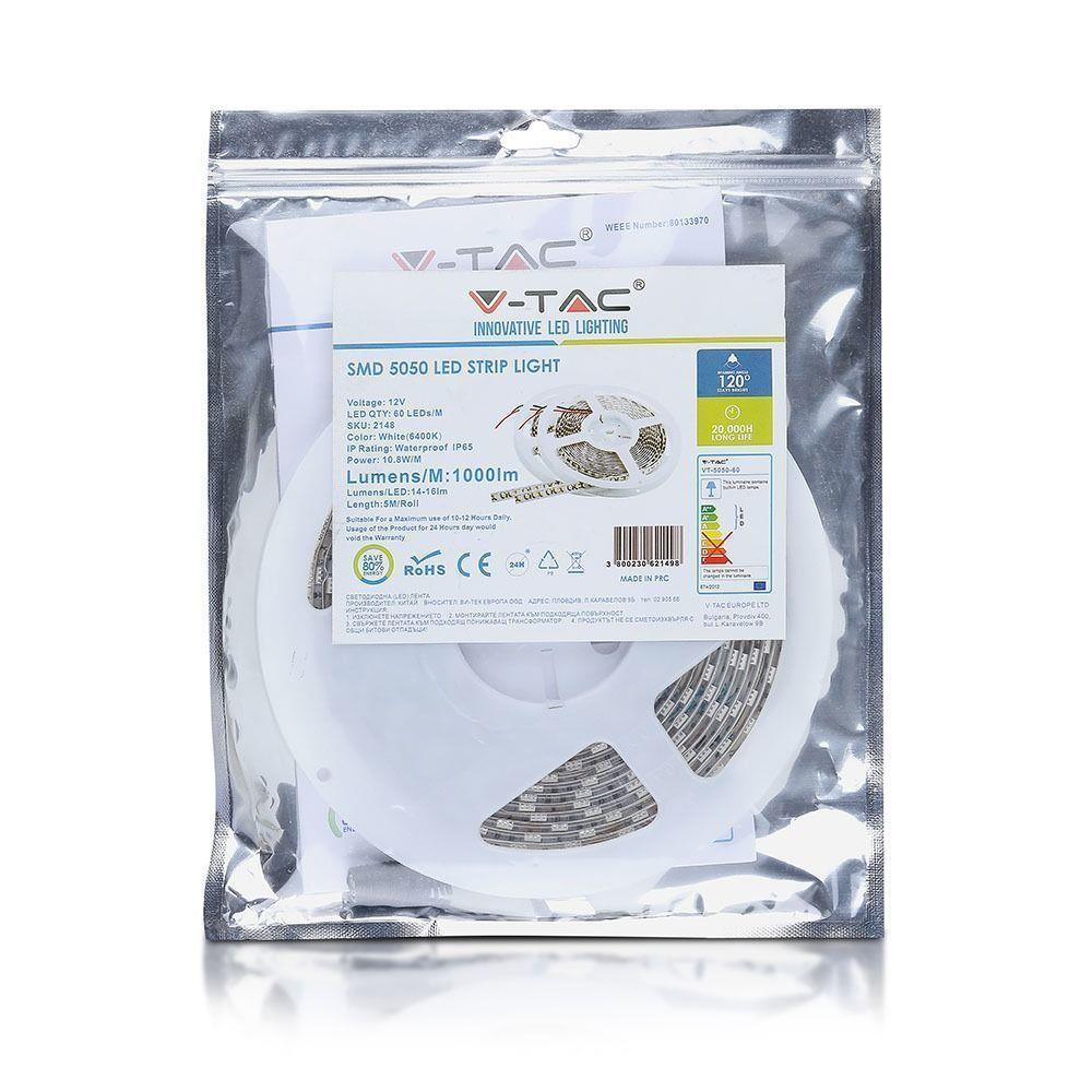 Taśma LED V-TAC SMD5050 300LED IP65 RĘKAW 10W/m VT-5050 6000K 1000lm