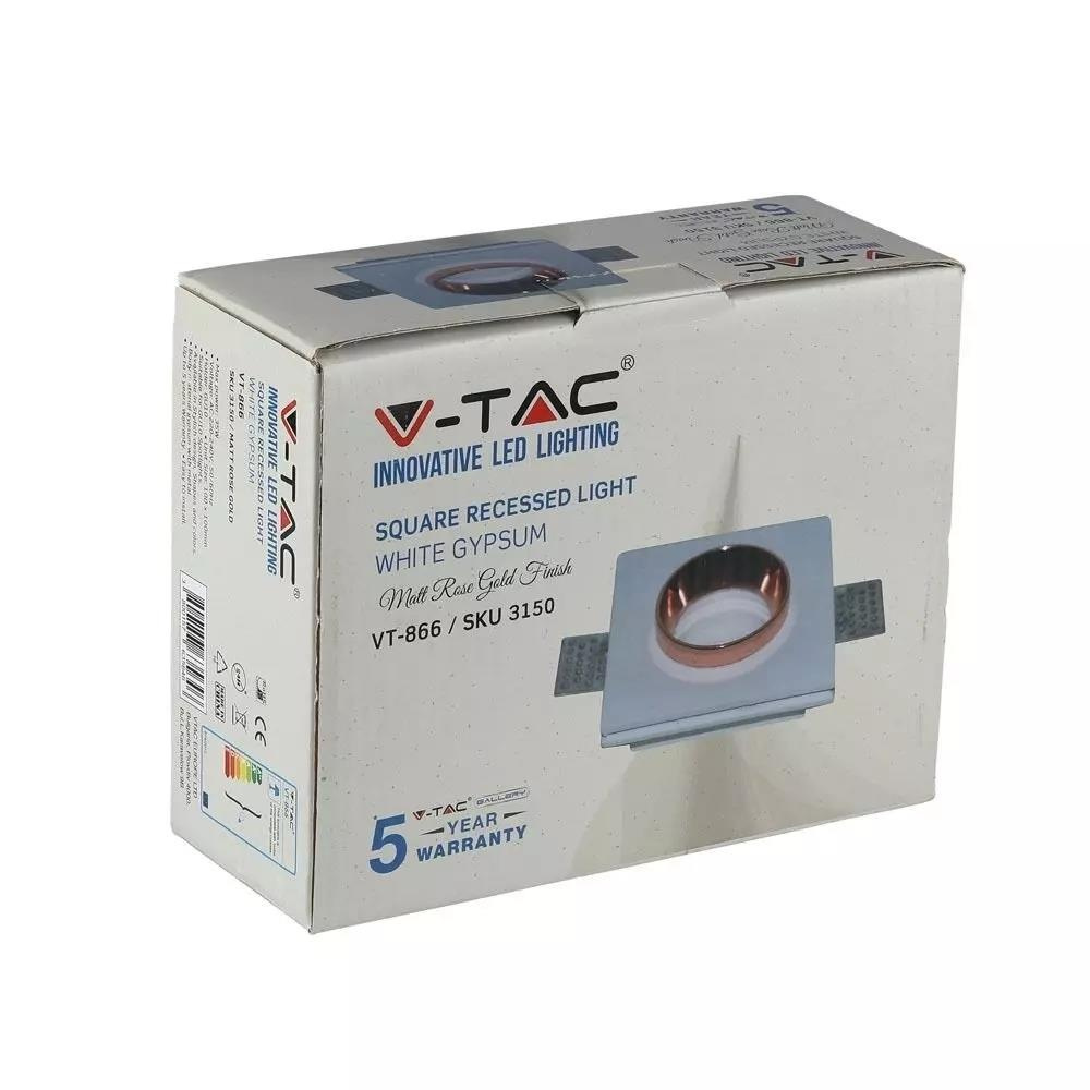 Oczko V-TAC GIPS GU10 Kwadrat Wpuszczane G-K Białe+Złoto VT-866-GSQ 5 Lat Gwarancji