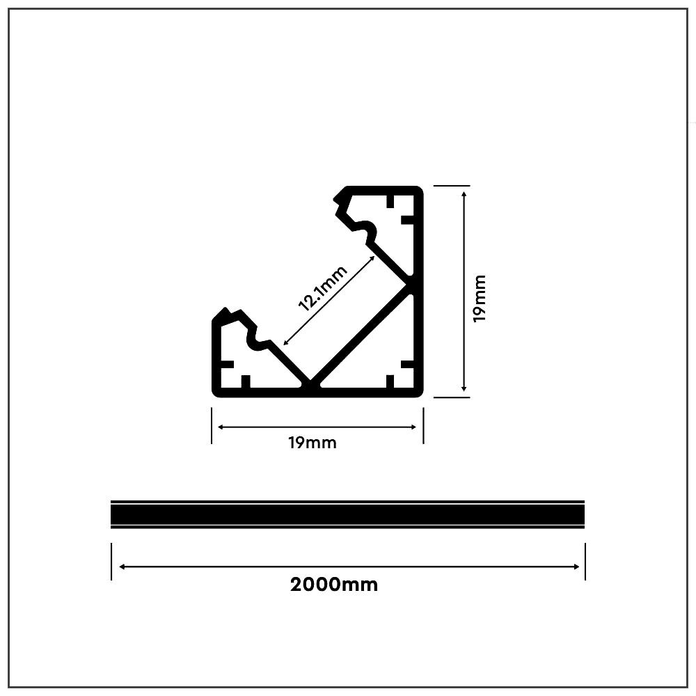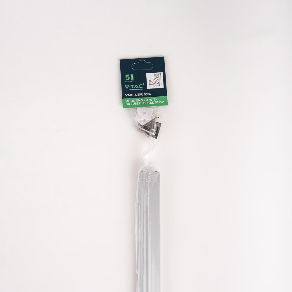 Profil Aluminiowy V-TAC 2mb Anodowany, Klosz Mleczny, Kątowy VT-8114