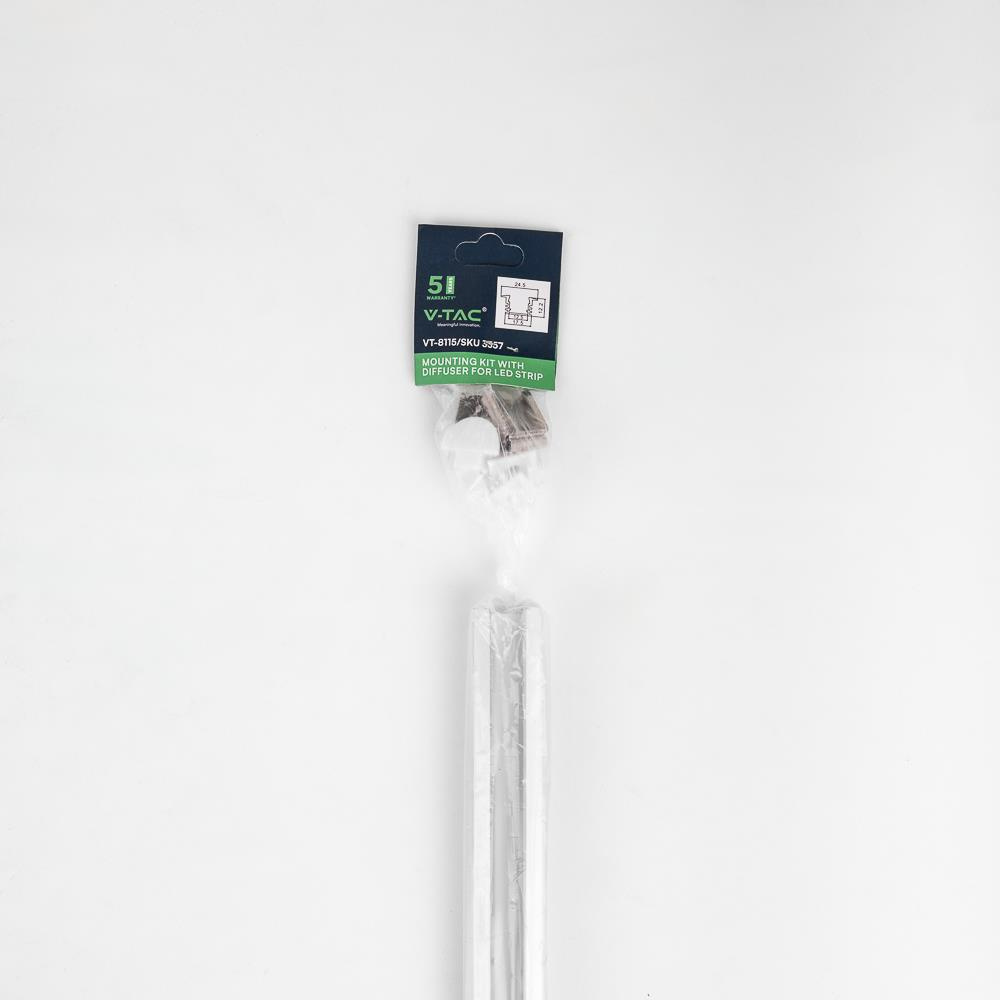Profil Aluminiowy V-TAC 2mb Anodowany, Klosz Mleczny, Wpuszczany VT-8115