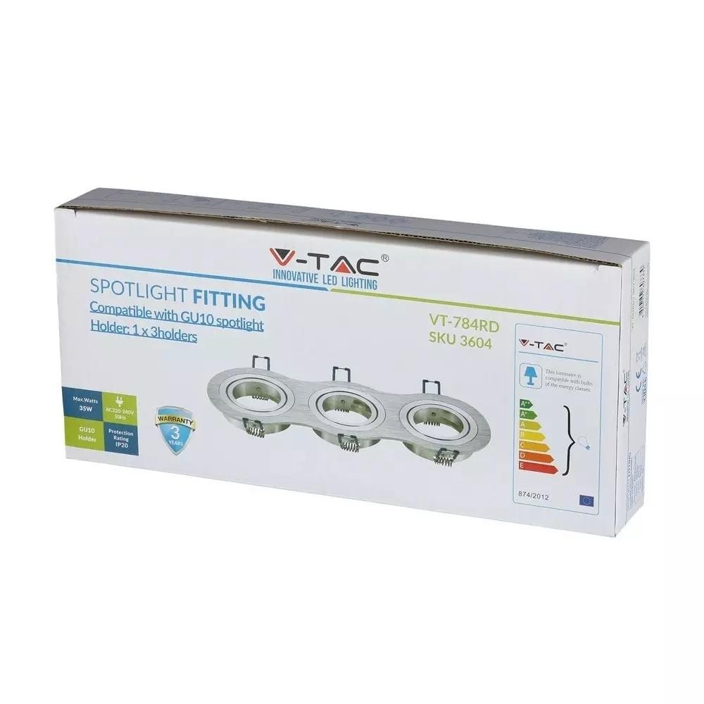 Oczko V-TAC Aluminiowe Odlew 3xGU10 Okrągłe Aluminium Szczotkowane VT-784RD-AB